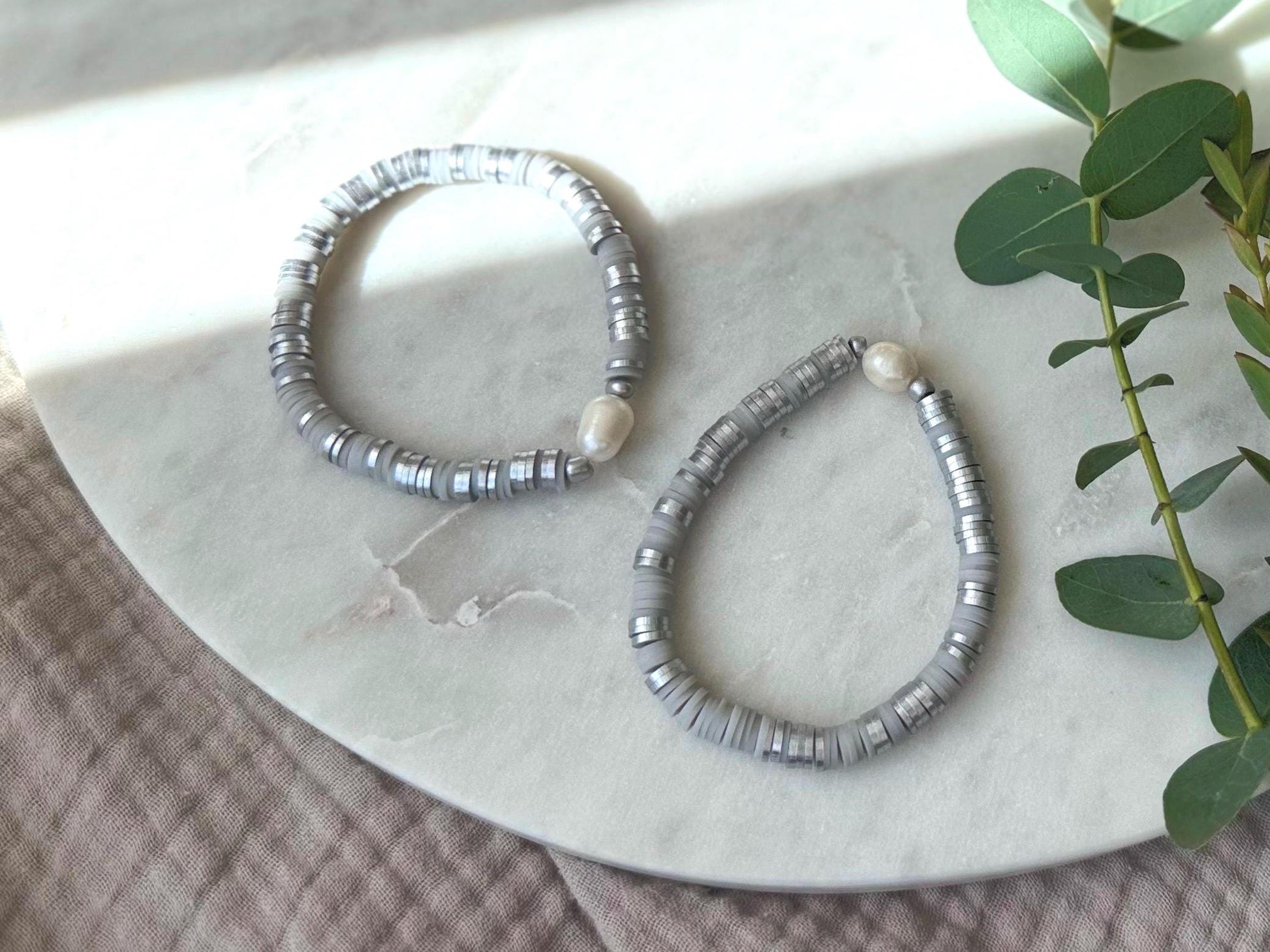 Dieses wunderschöne handgefertigte schlichte Armband aus hochwertigen Katsuki Perlen in Grau und Silber mit einer schlichten Süßwasserperle ist das perfekte Accessoire für jeden Anlass.