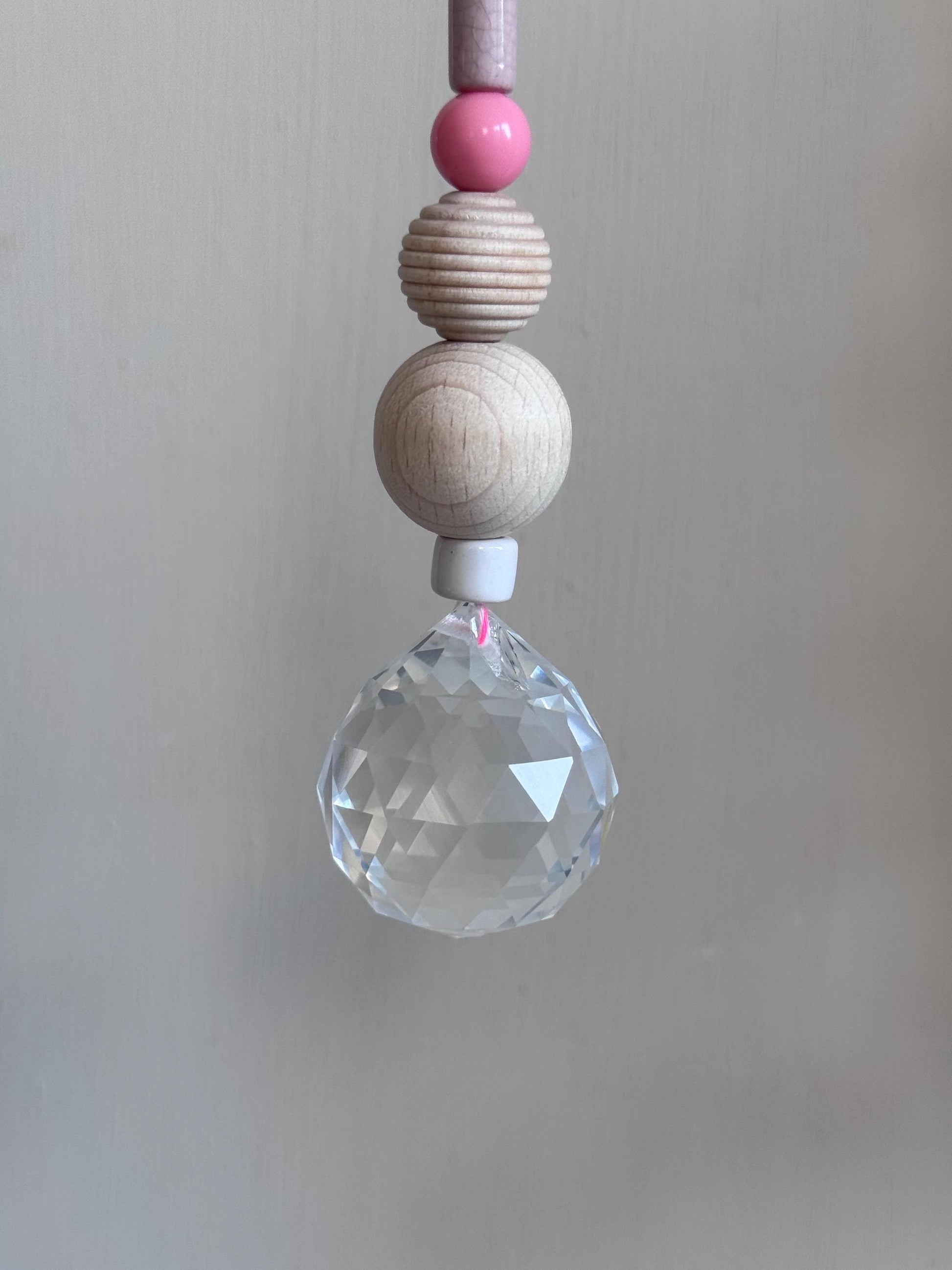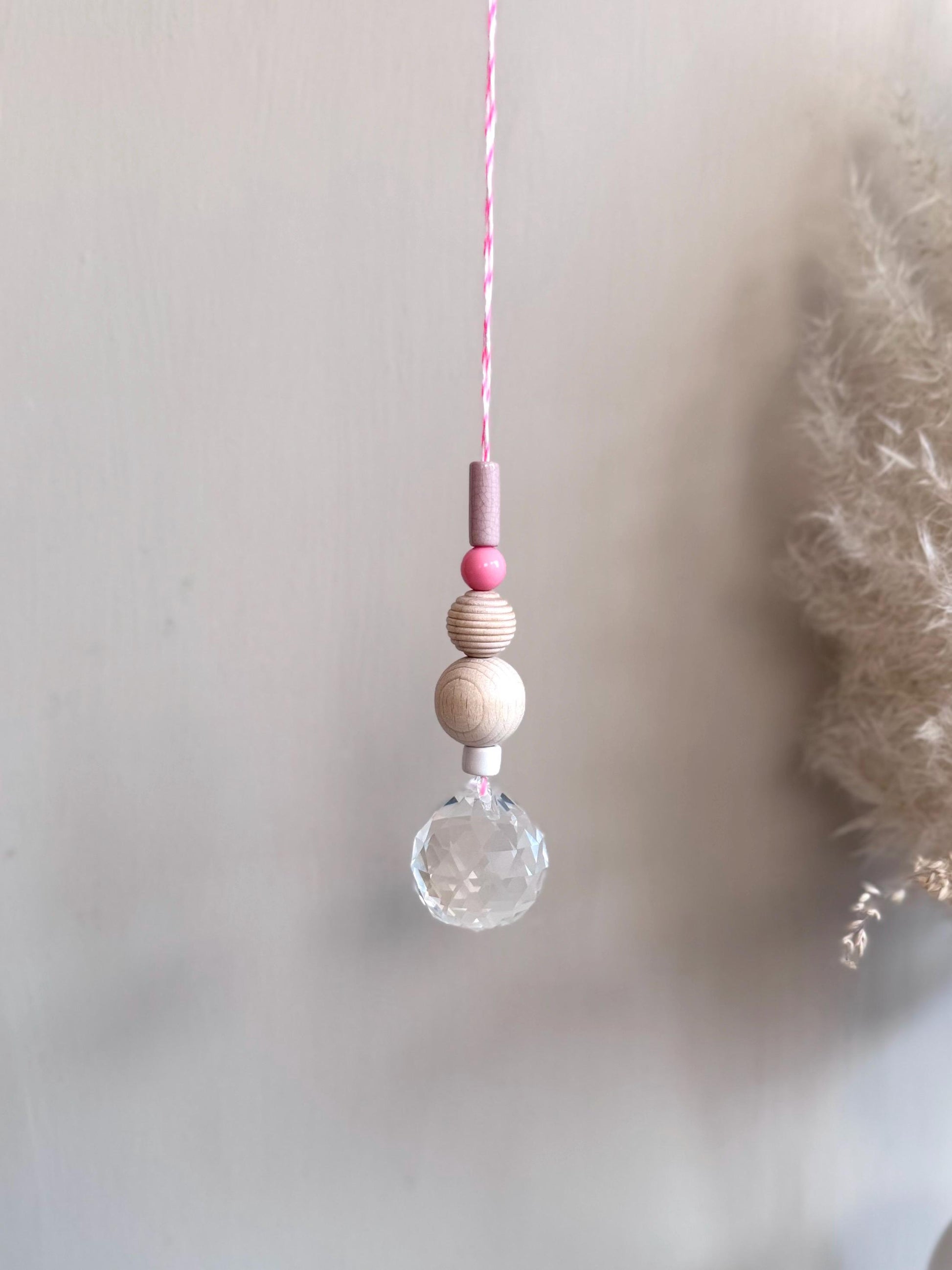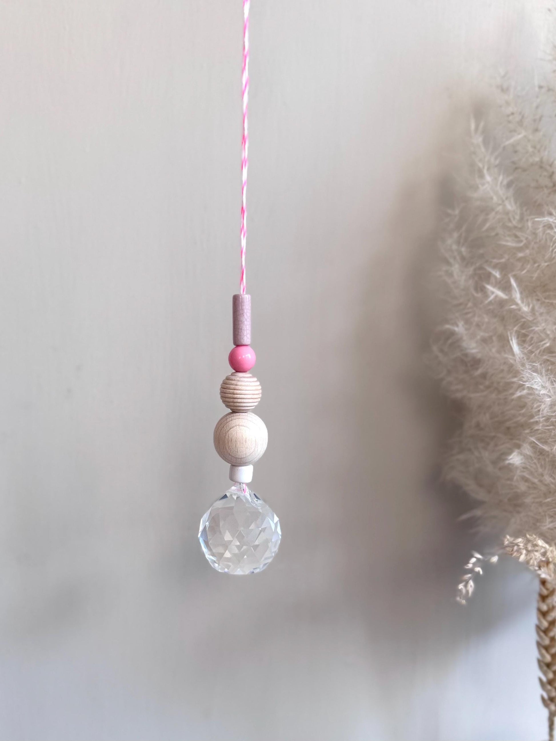 Jeder Sonnenfänger wird mit größter Sorgfalt und Liebe zum Detail handgefertigt. Die Kombination aus echtem Glaskristall, Keramikperlen und natürlichen Holzperlen macht jeden Sonnenfänger zu einem einzigartigen Unikat.