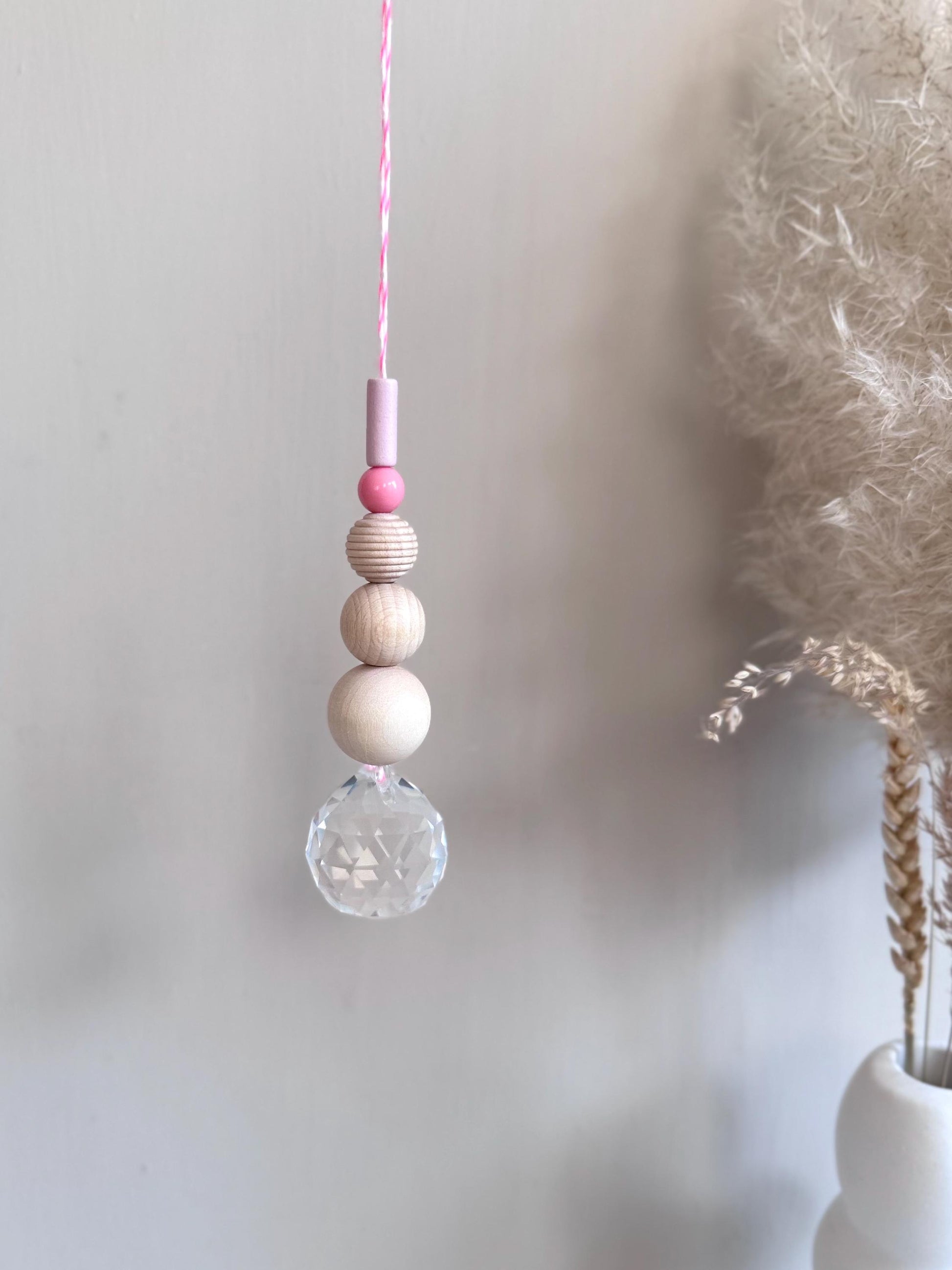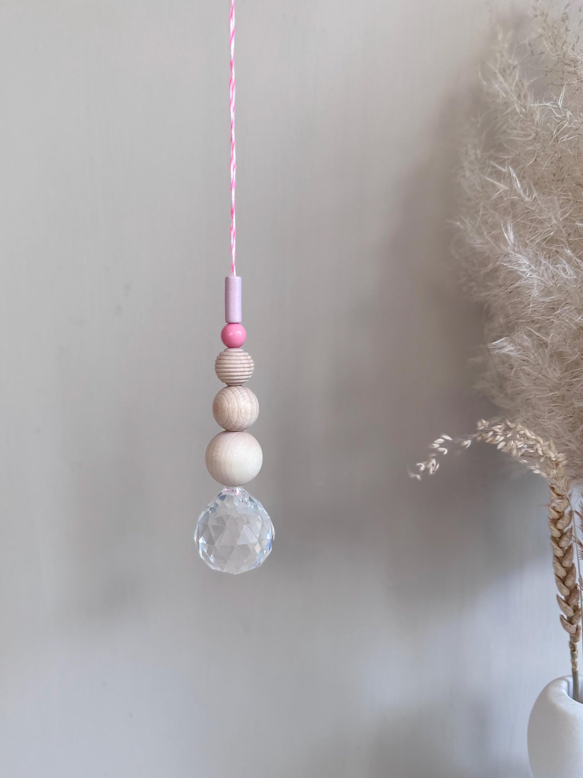 Jeder Sonnenfänger wird mit größter Sorgfalt und Liebe zum Detail handgefertigt. Die Kombination aus echtem Glaskristall, Keramikperlen und natürlichen Holzperlen macht jeden Sonnenfänger zu einem einzigartigen Unikat.