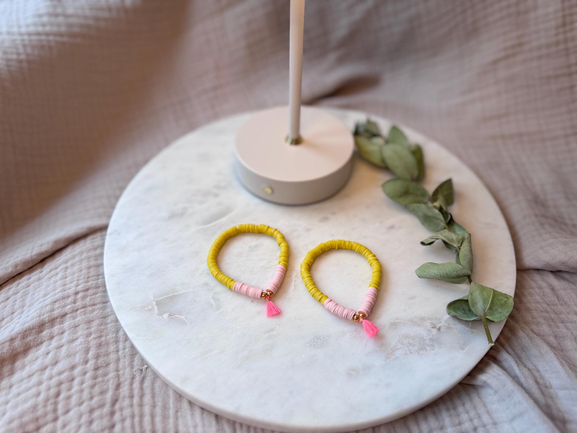 Katsuki Perlenarmband handgefertigt - Buntes Armband mit Quaste in Neonpink