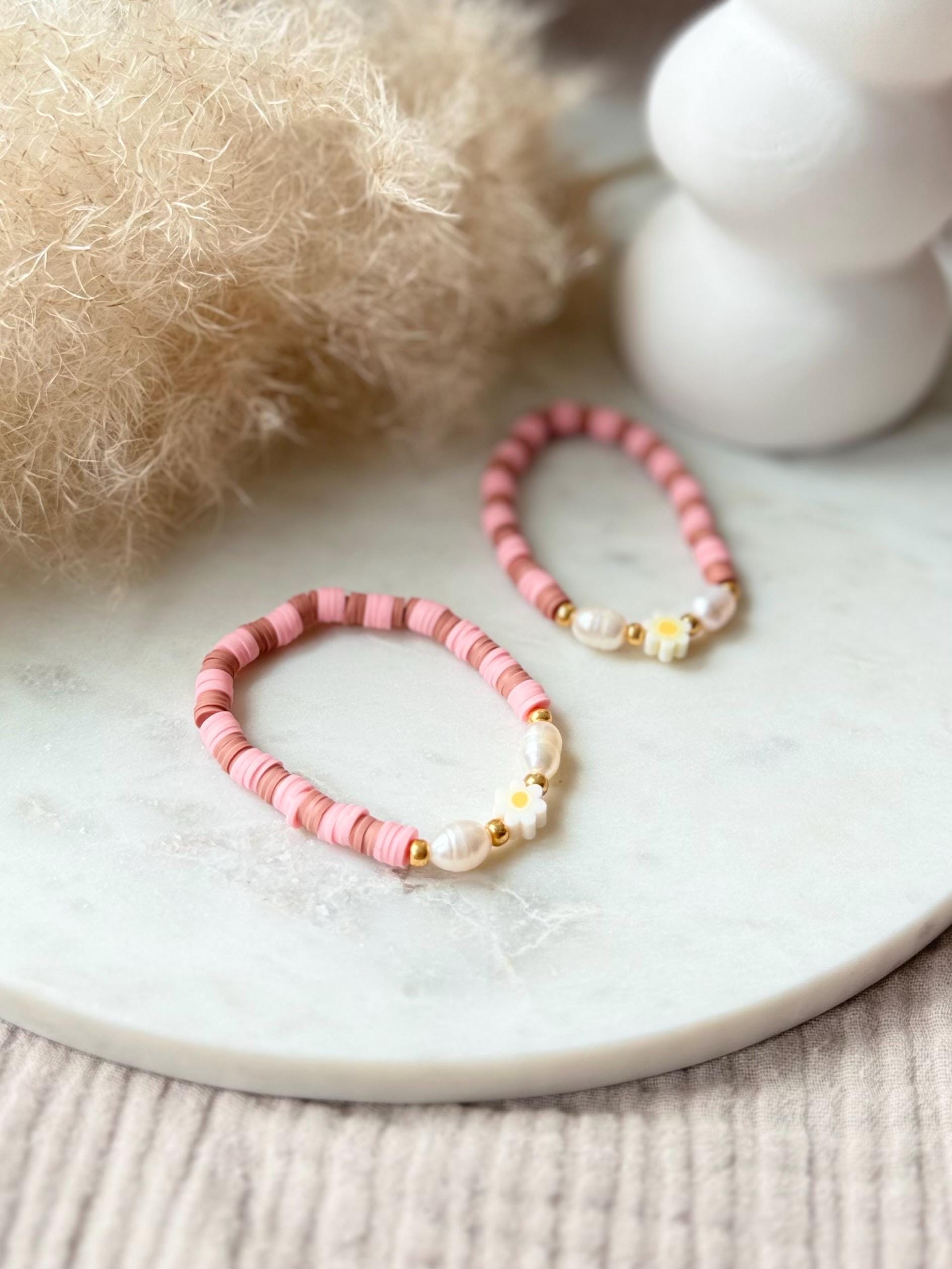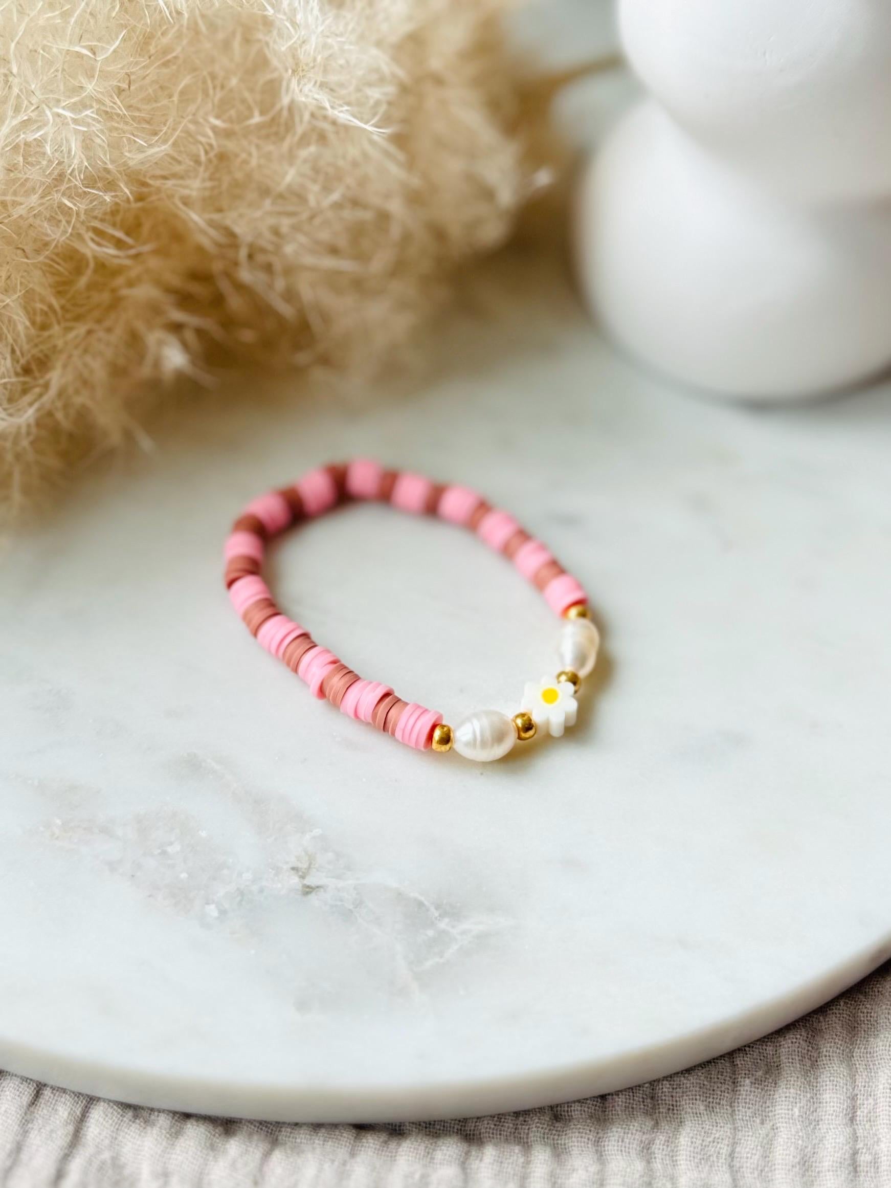 Katsuki Perlenarmband handgefertigt - Buntes Armband mit Süßwasserperlen und Blume