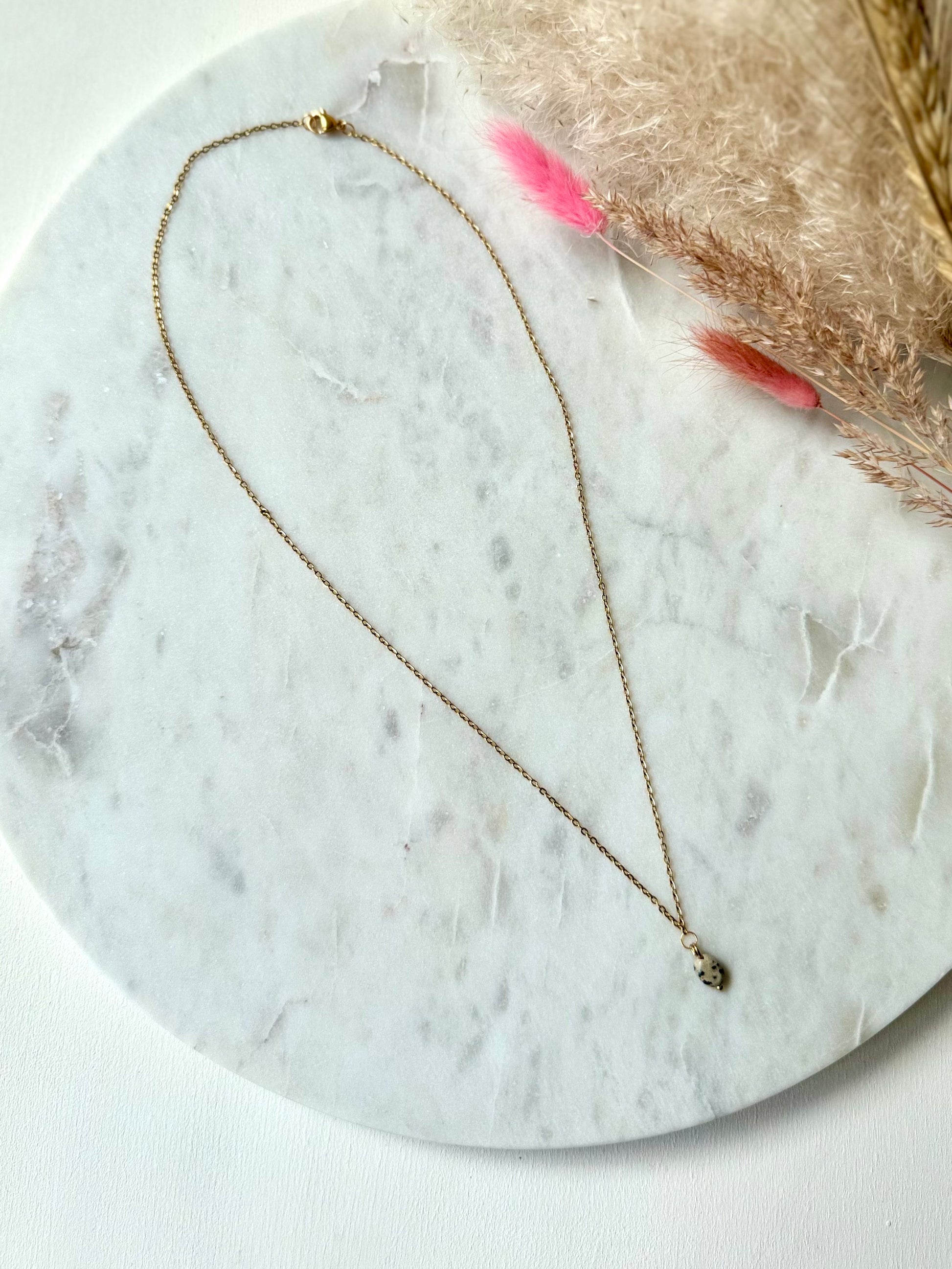 Vergoldete Edelstahlkette Dalmatinerjaspis handgefertigt - Edelstein Schmuck Damen