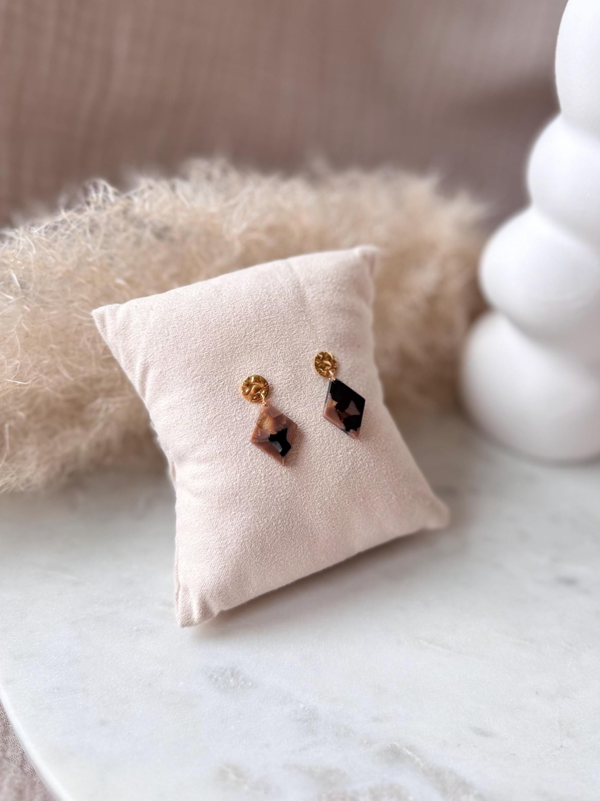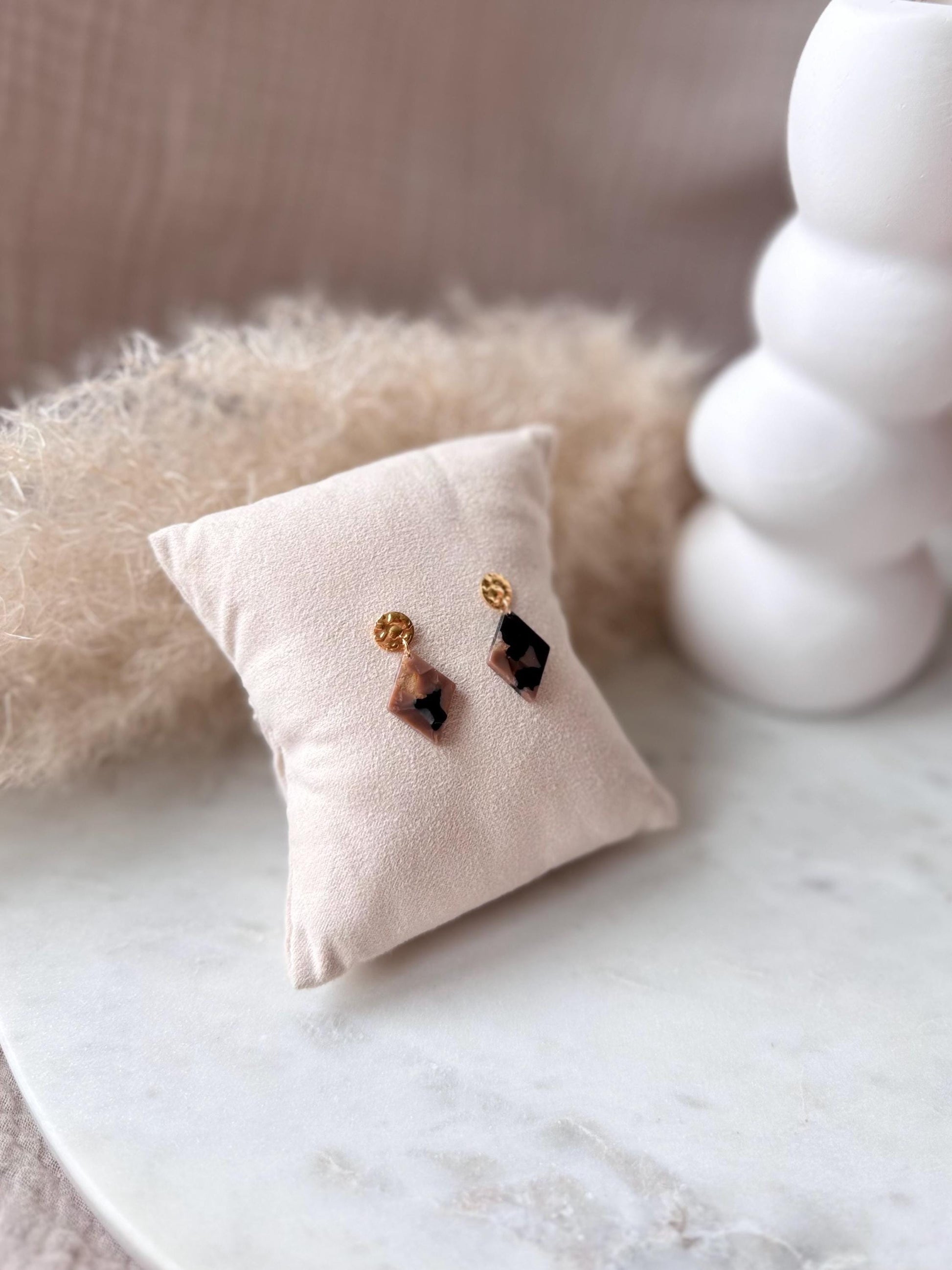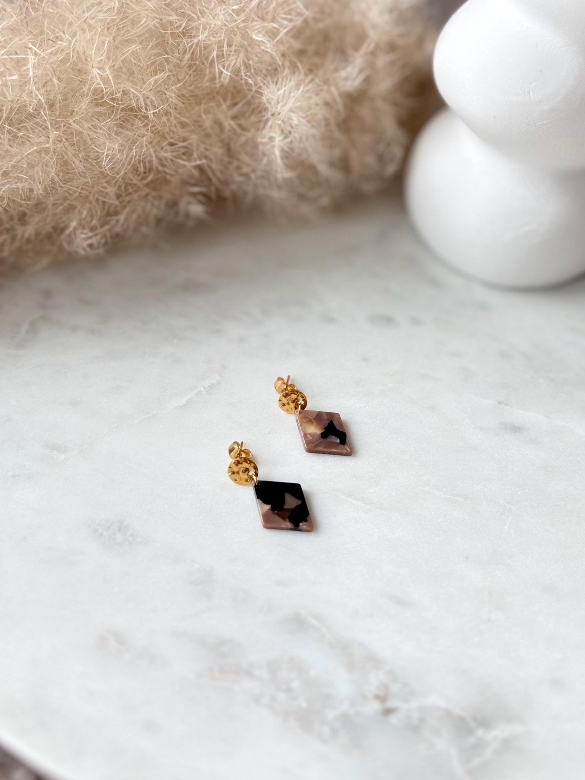 Vergoldete Edelstahl Ohrringe mit Resin Anhänger in Rautenform - Handgefertigt