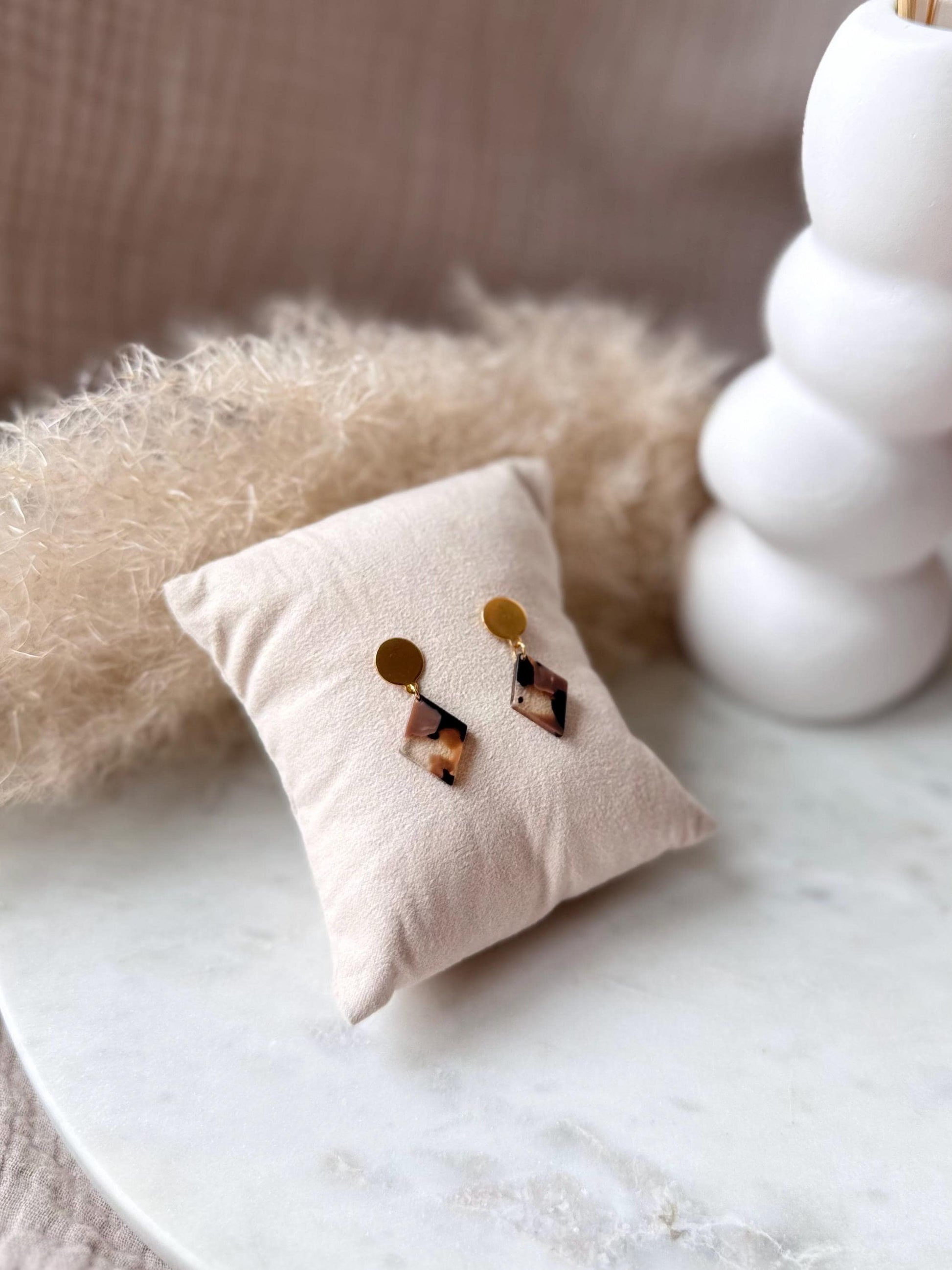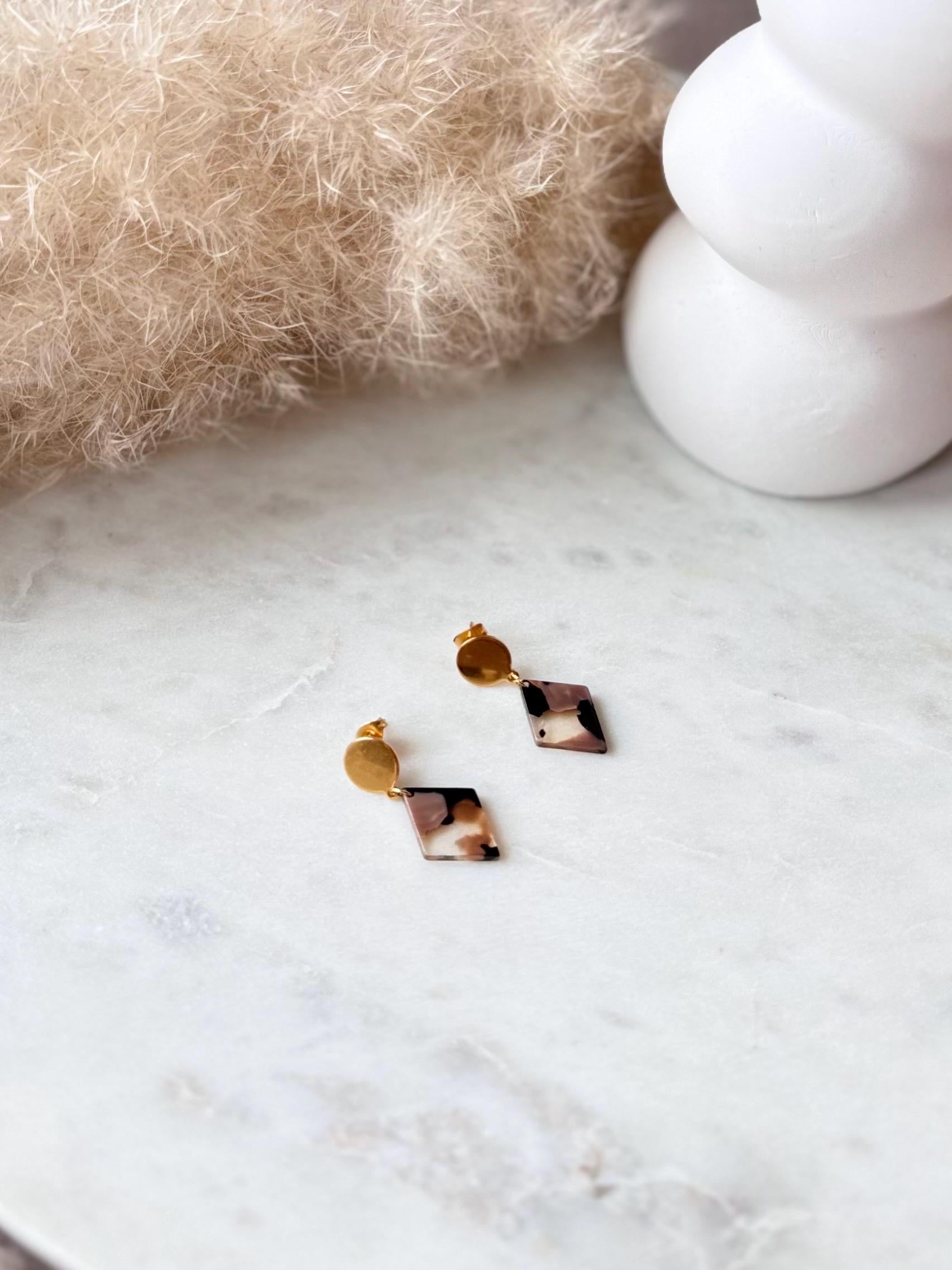 Vergoldete Edelstahl Ohrringe mit Resin Anhänger in Rautenform - Handgefertigt