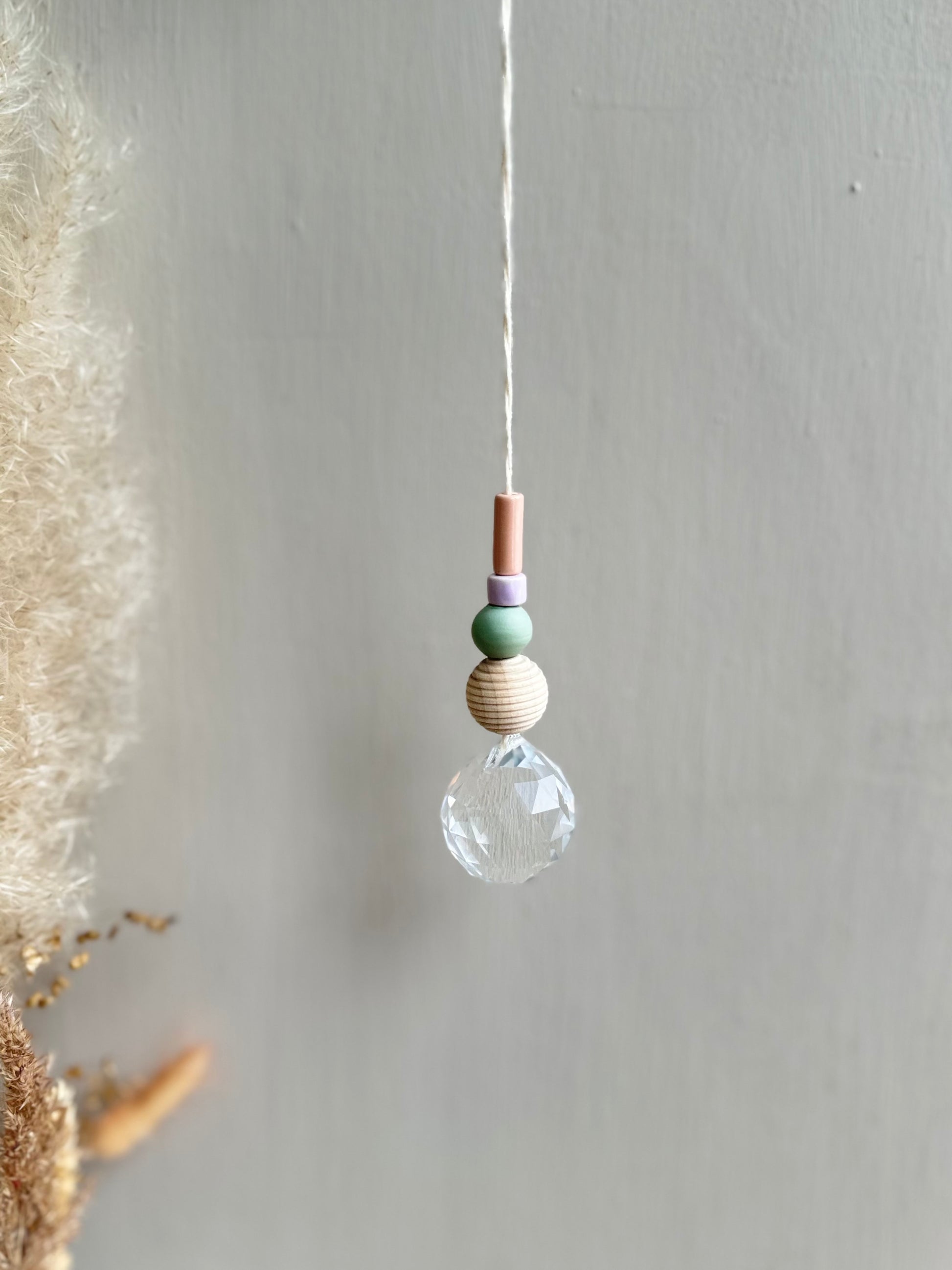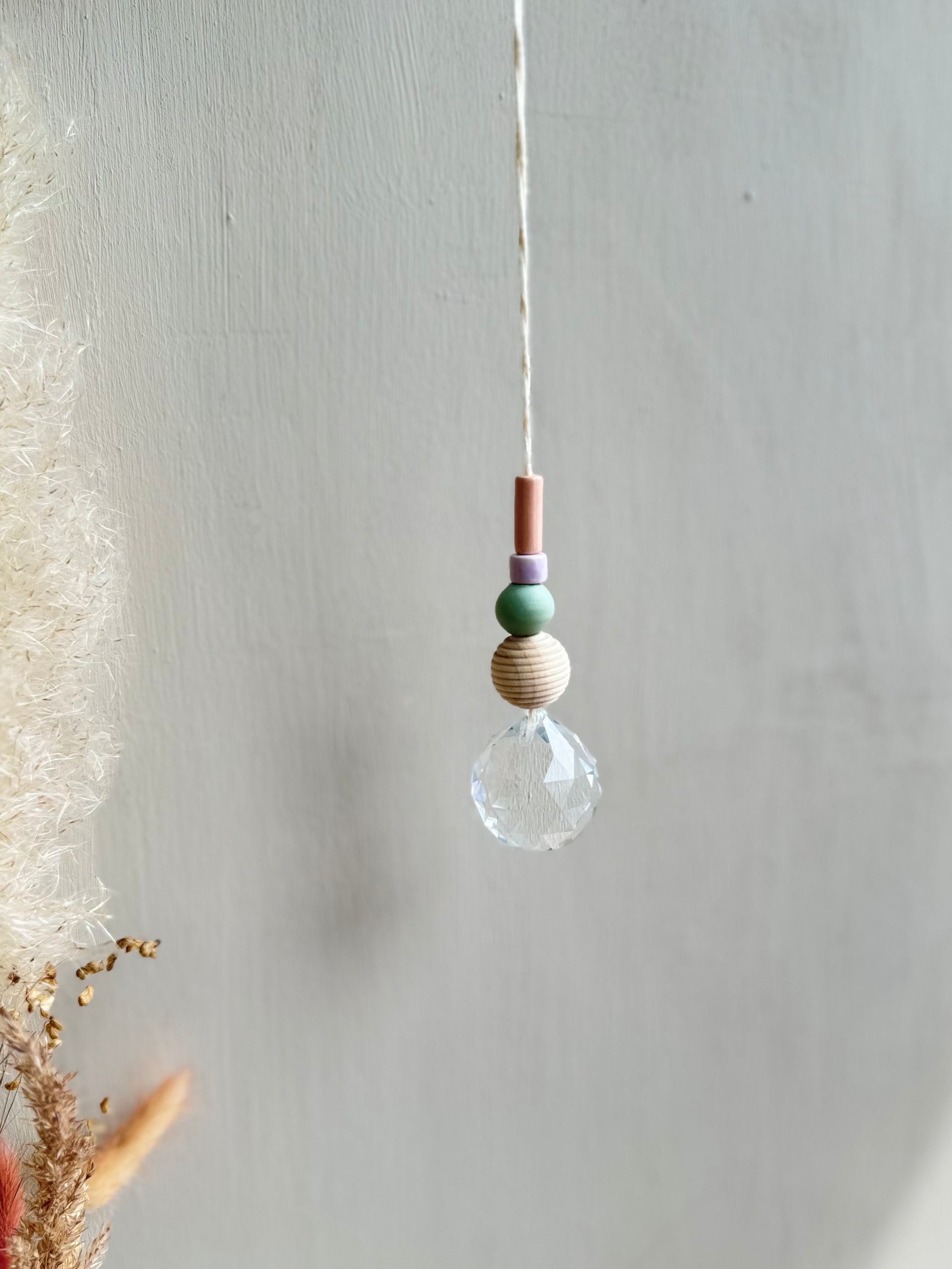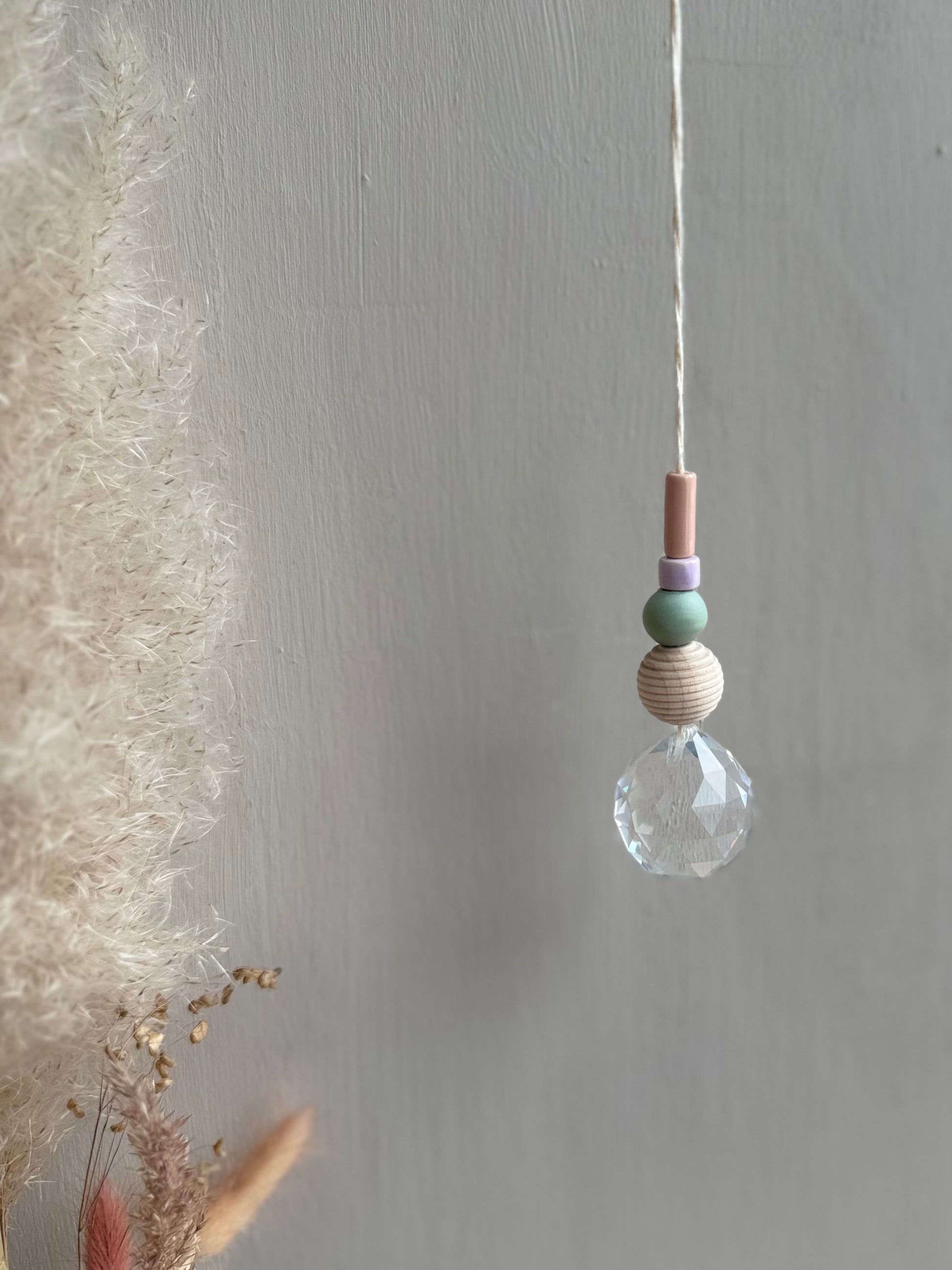 Jeder Sonnenfänger wird mit größter Sorgfalt und Liebe zum Detail handgefertigt. Die Kombination aus echtem Glaskristall, Keramikperlen und natürlichen Holzperlen macht jeden Sonnenfänger zu einem einzigartigen Unikat.