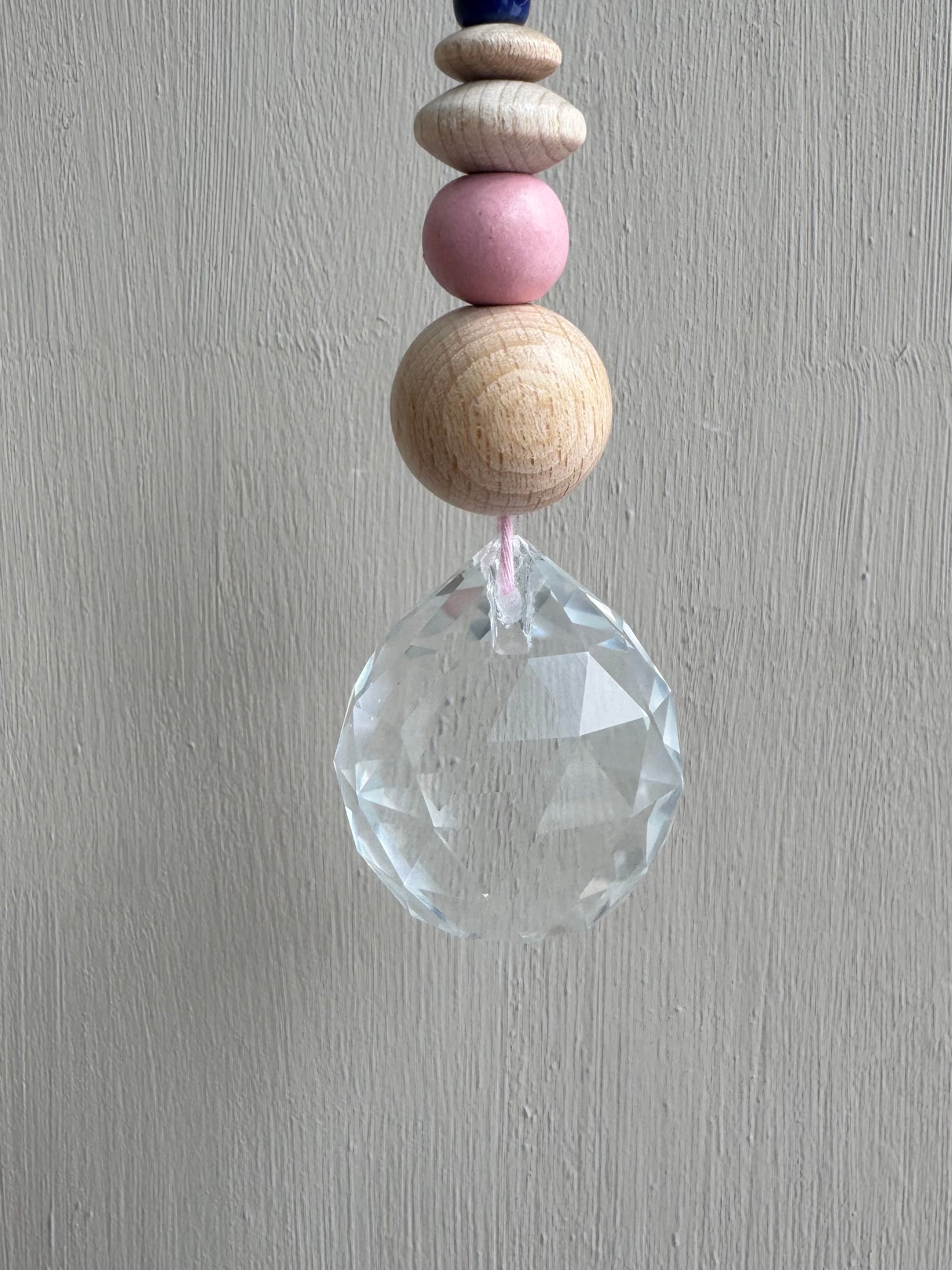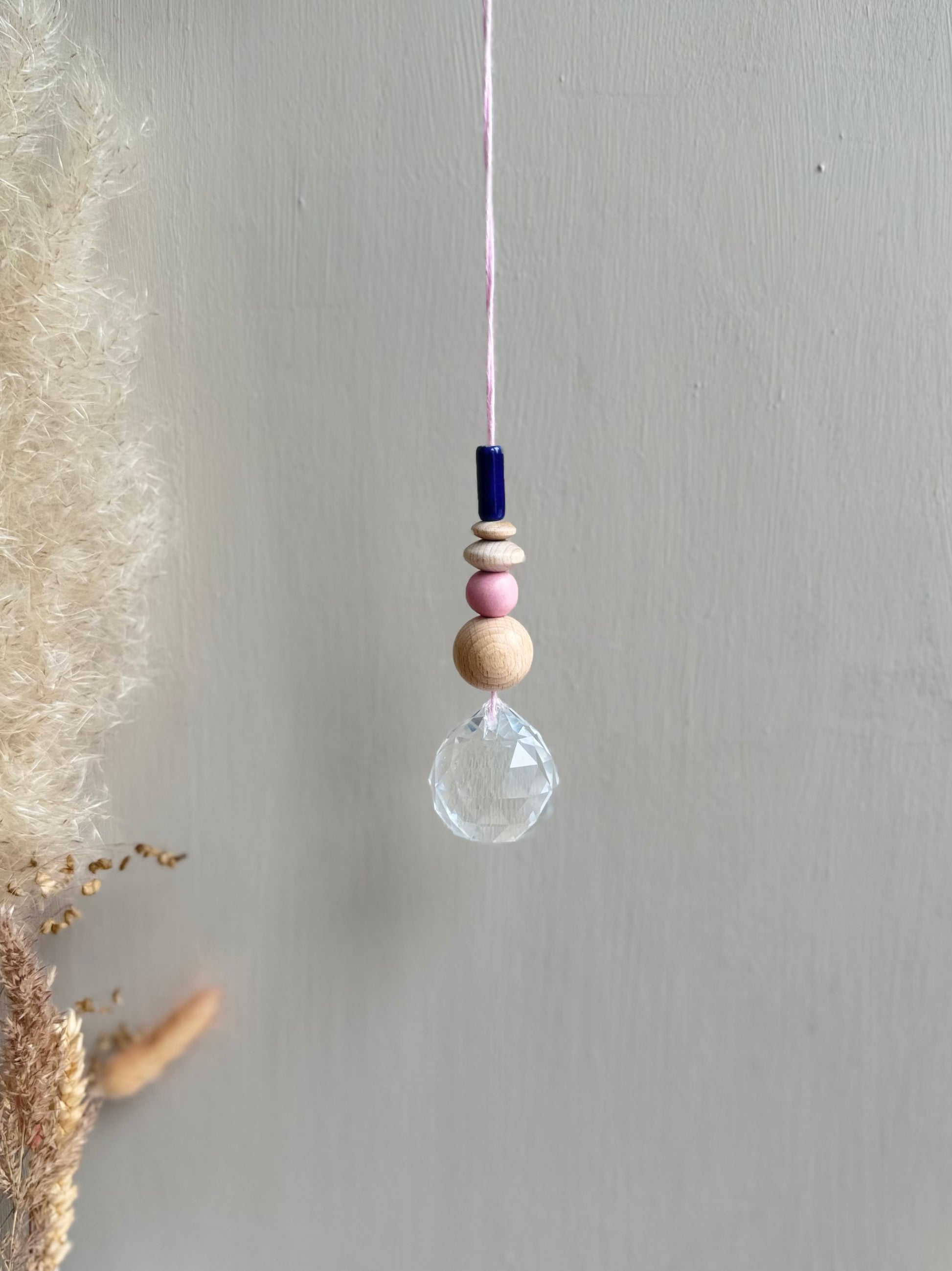 Handgefertigter bunter Sonnenfänger - Suncatcher mit Prisma - Regenbogen Fensterdekoration aus Glas - Rosa und Blau