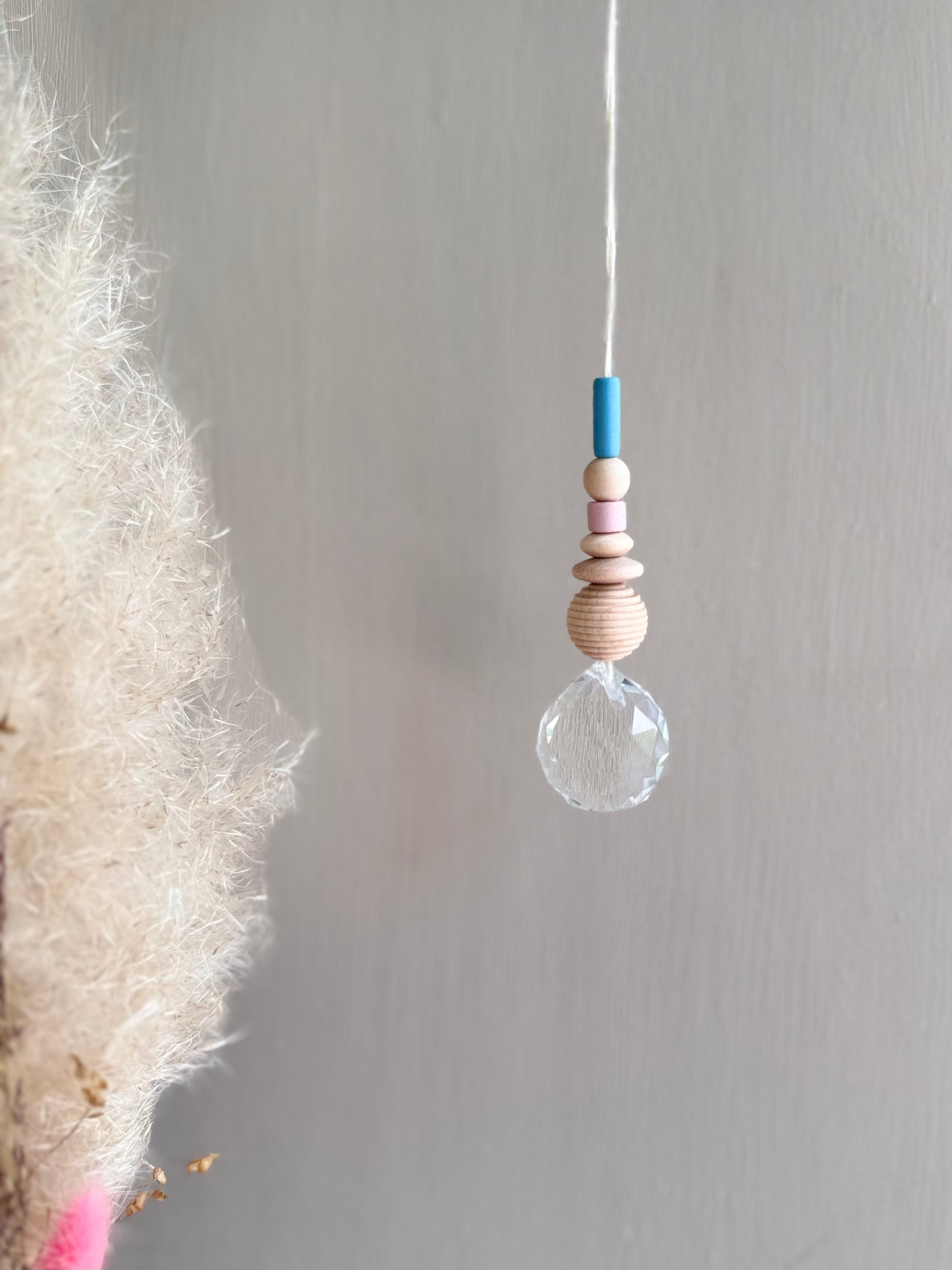 Jeder Sonnenfänger wird mit größter Sorgfalt und Liebe zum Detail handgefertigt. Die Kombination aus echtem Glaskristall, Keramikperlen und natürlichen Holzperlen macht jeden Sonnenfänger zu einem einzigartigen Unikat.