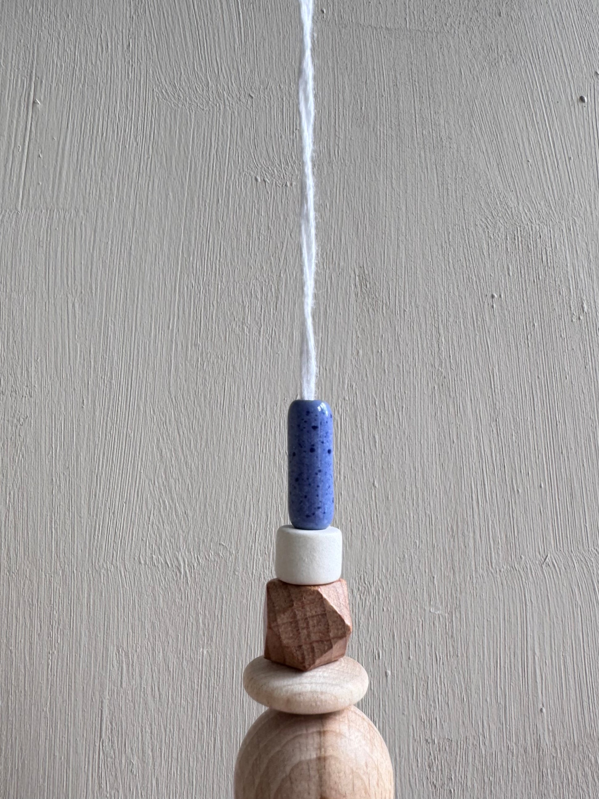 - Keramikperlen: Blau gemustert (glänzend) und Weiß (matt)