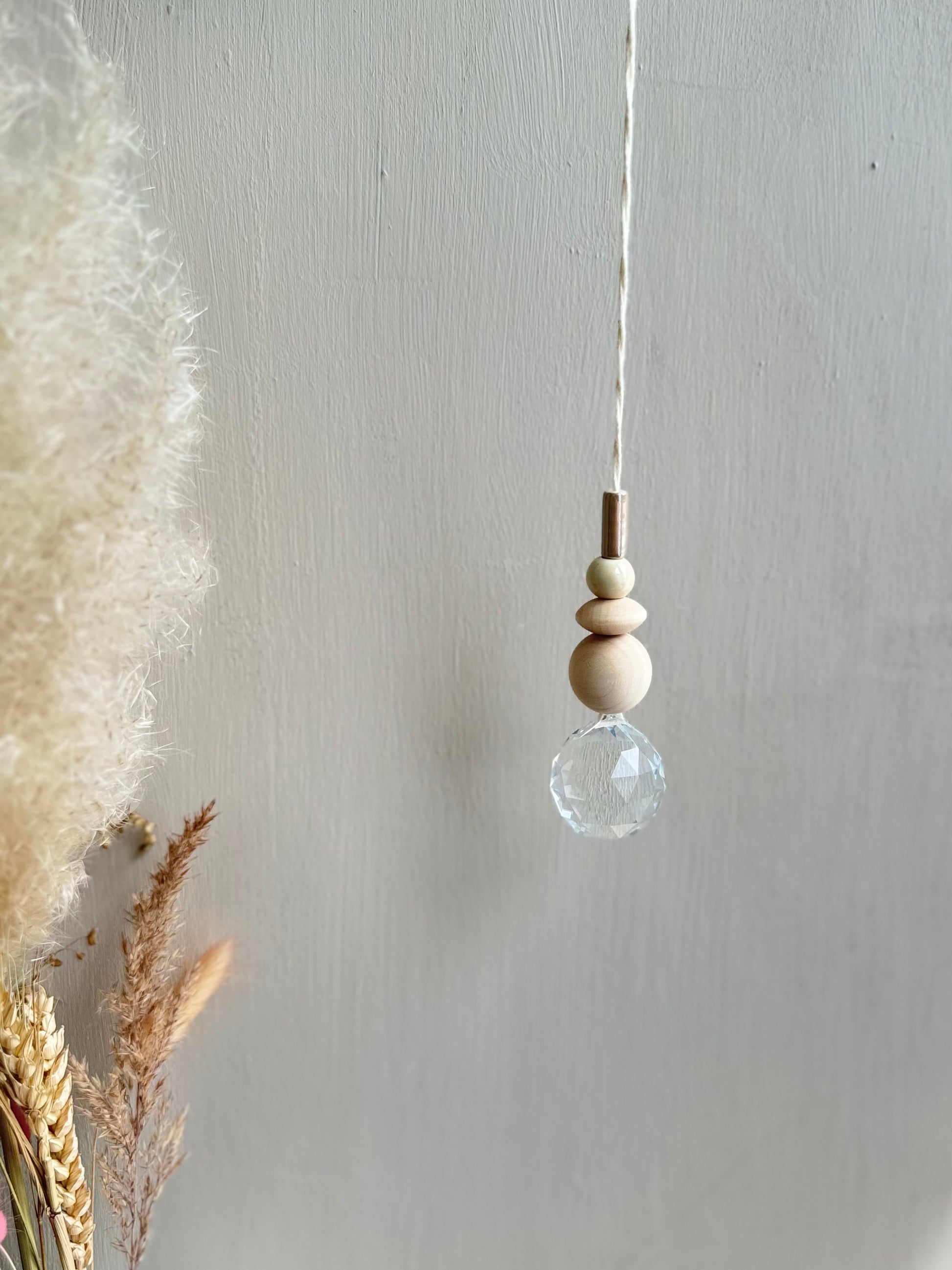 Jeder Sonnenfänger wird mit größter Sorgfalt und Liebe zum Detail handgefertigt. Die Kombination aus echtem Glaskristall, Keramikperlen und natürlichen Holzperlen macht jeden Sonnenfänger zu einem einzigartigen Unikat.