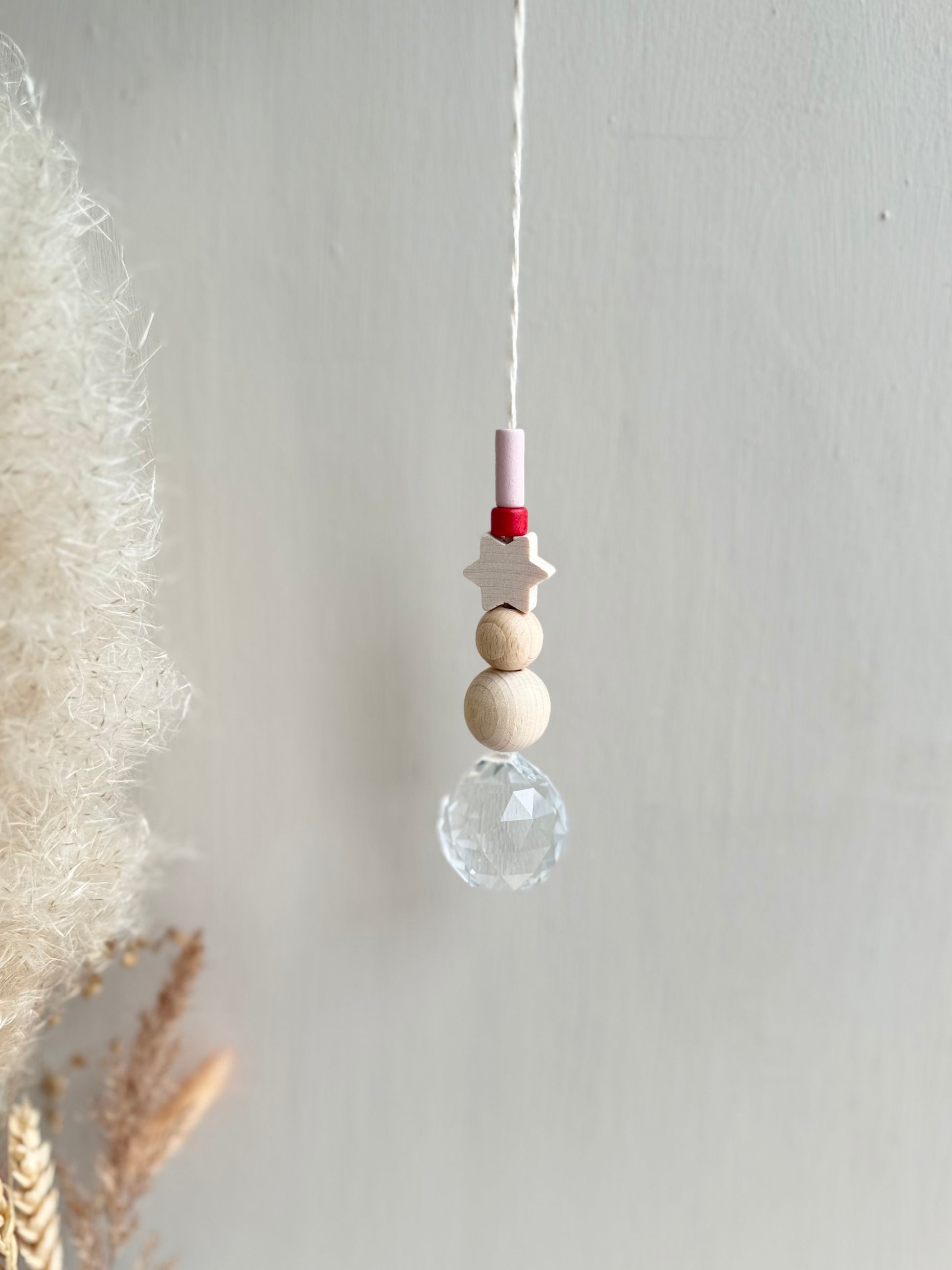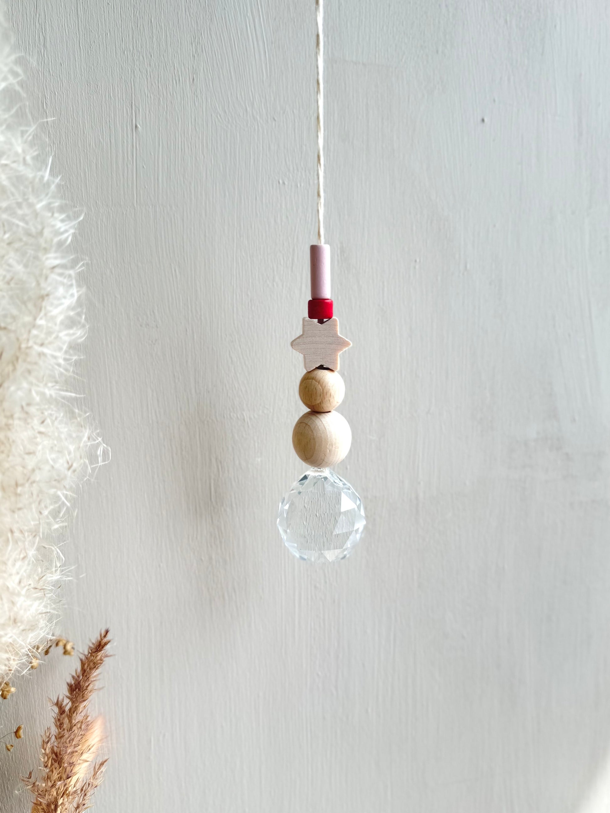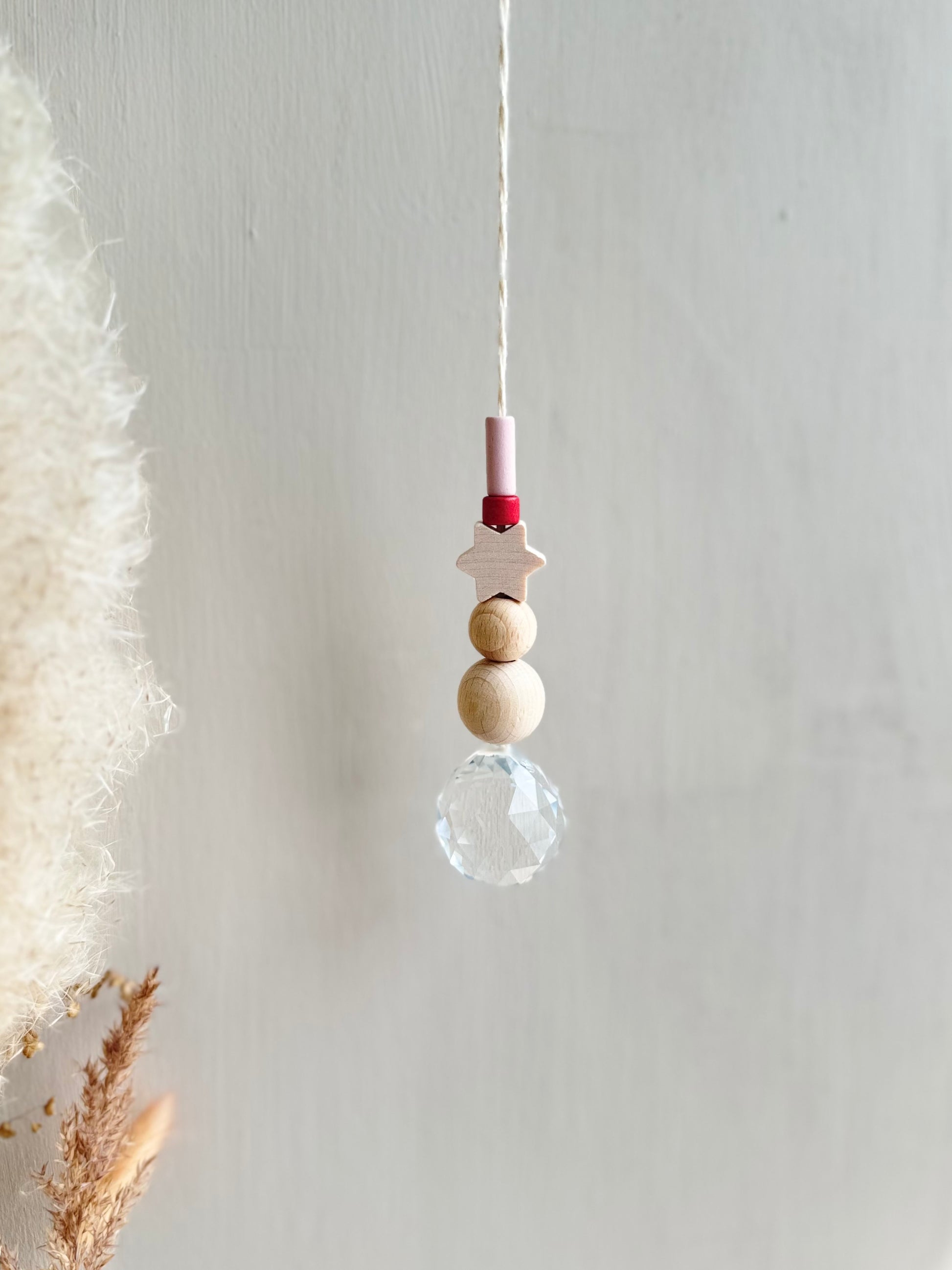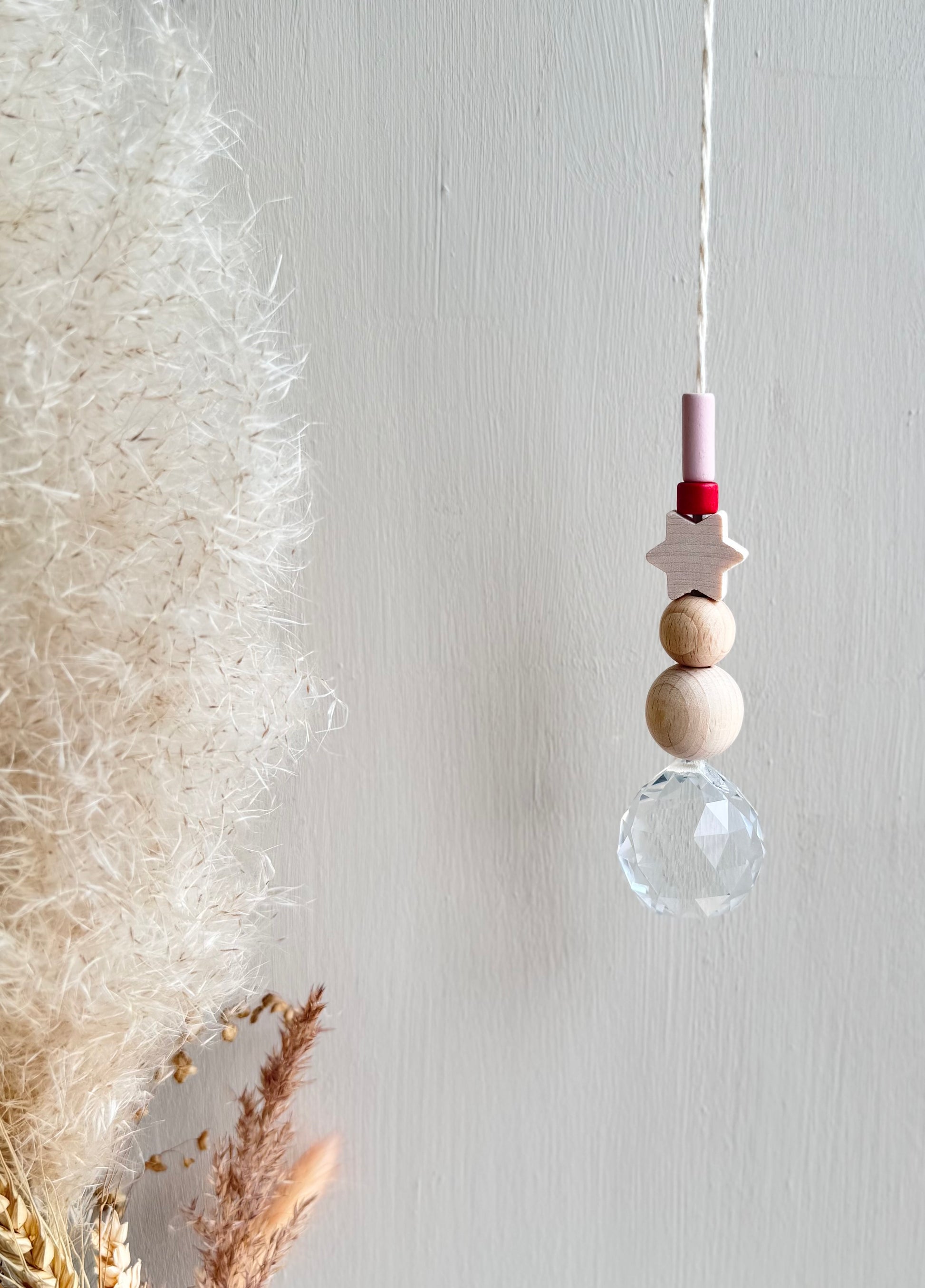 Jeder Sonnenfänger wird mit größter Sorgfalt und Liebe zum Detail handgefertigt. Die Kombination aus echtem Glaskristall, Keramikperlen und natürlichen Holzperlen macht jeden Sonnenfänger zu einem einzigartigen Unikat.
