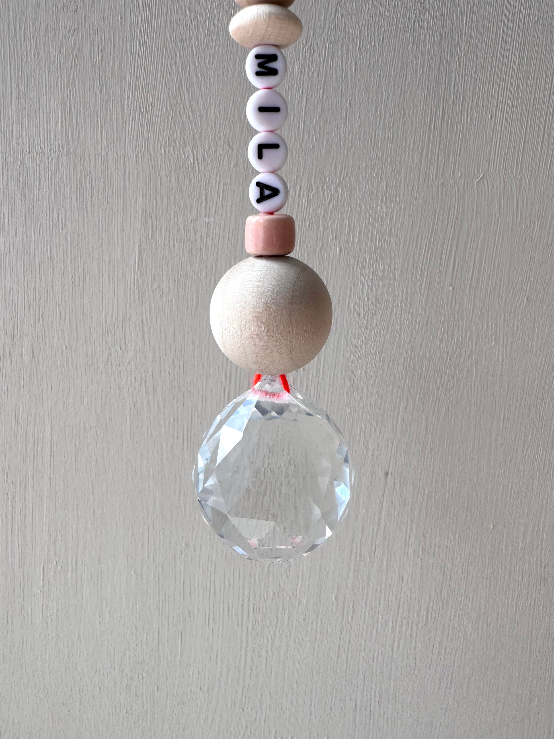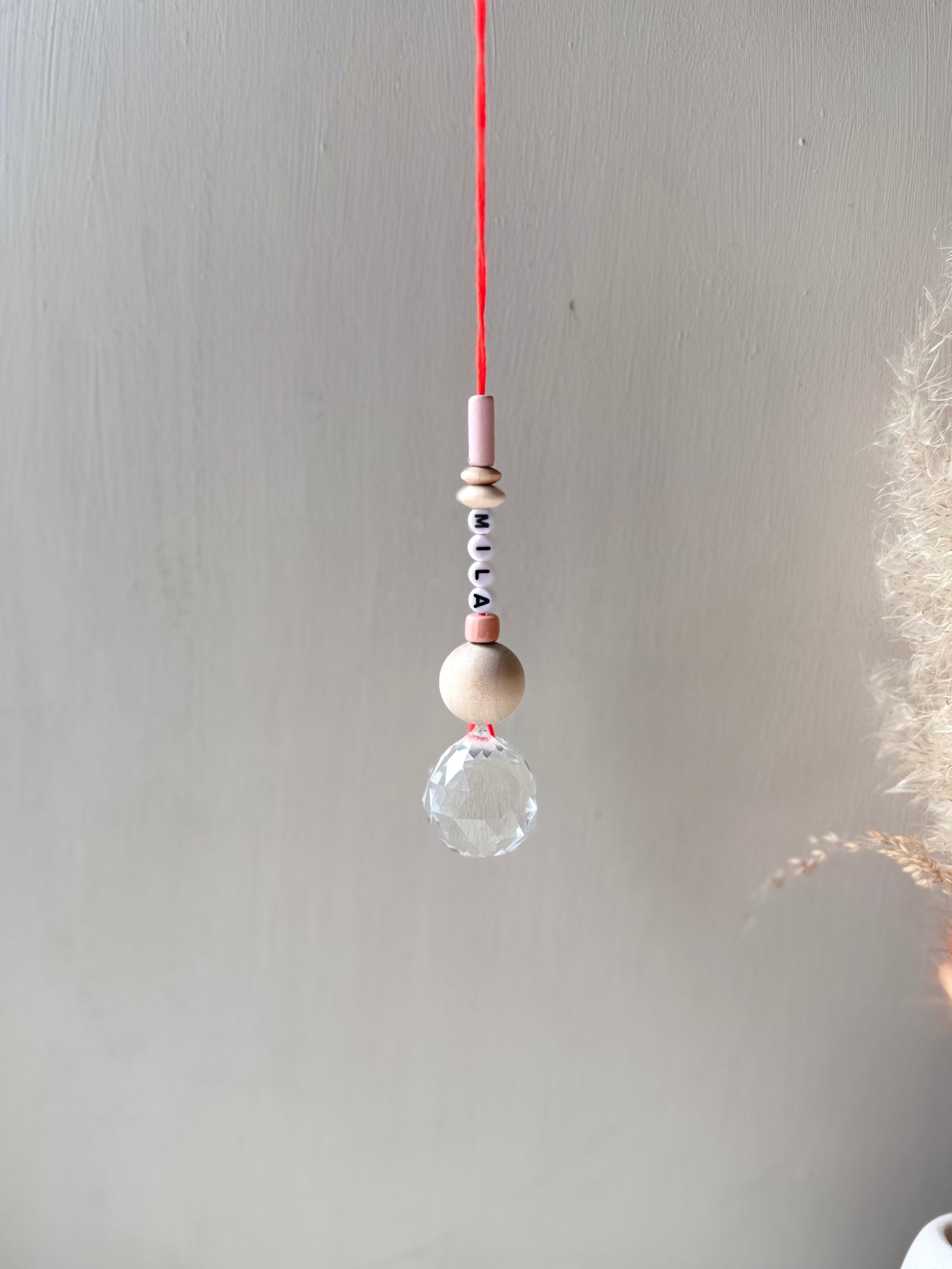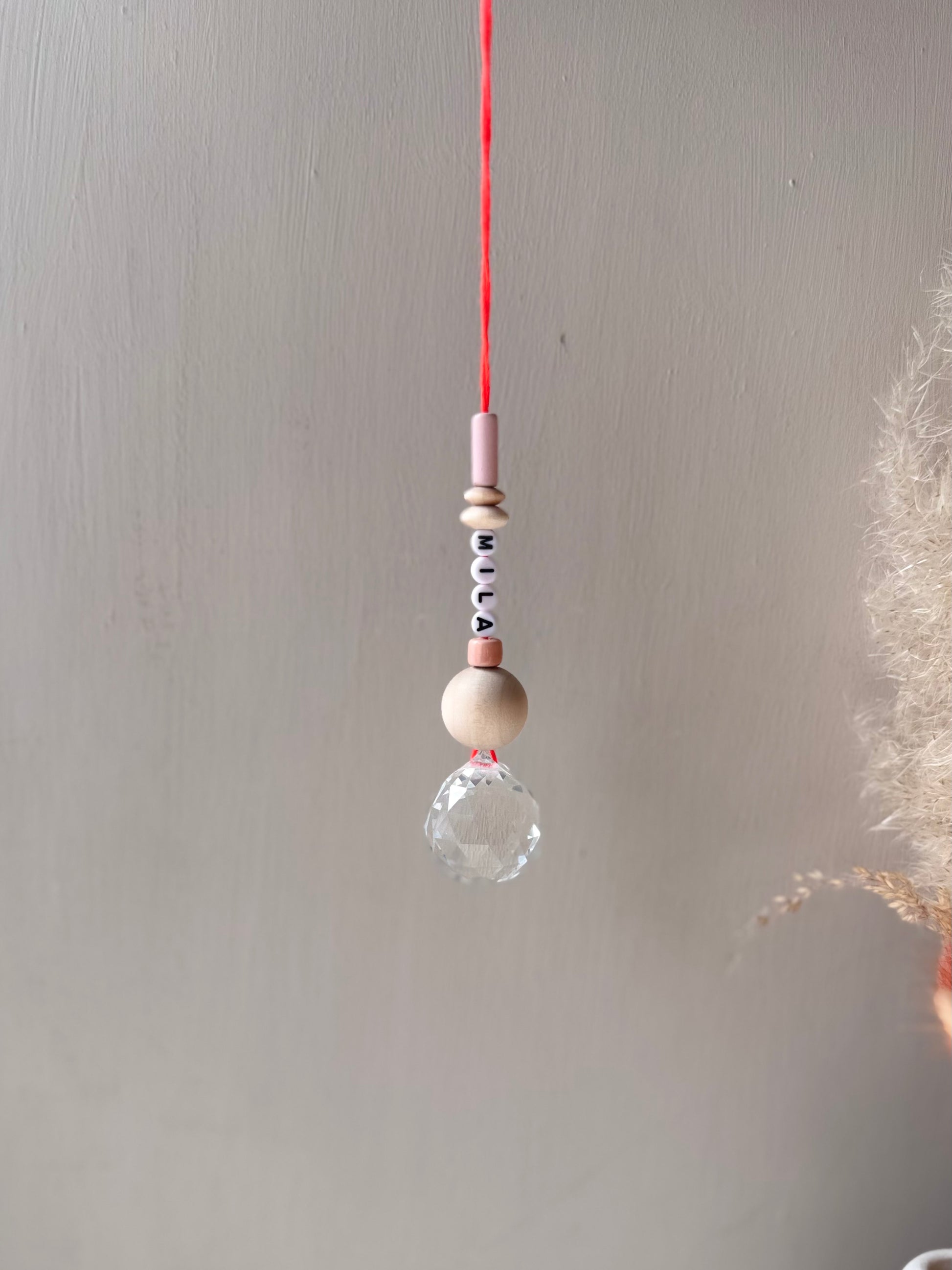 Jeder Sonnenfänger wird mit größter Sorgfalt und Liebe zum Detail handgefertigt. Die Kombination aus echtem Glaskristall, Acryl Buchstabenperlen, Keramikperlen und natürlichen Holzperlen macht jeden Sonnenfänger zu einem einzigartigen Unikat.