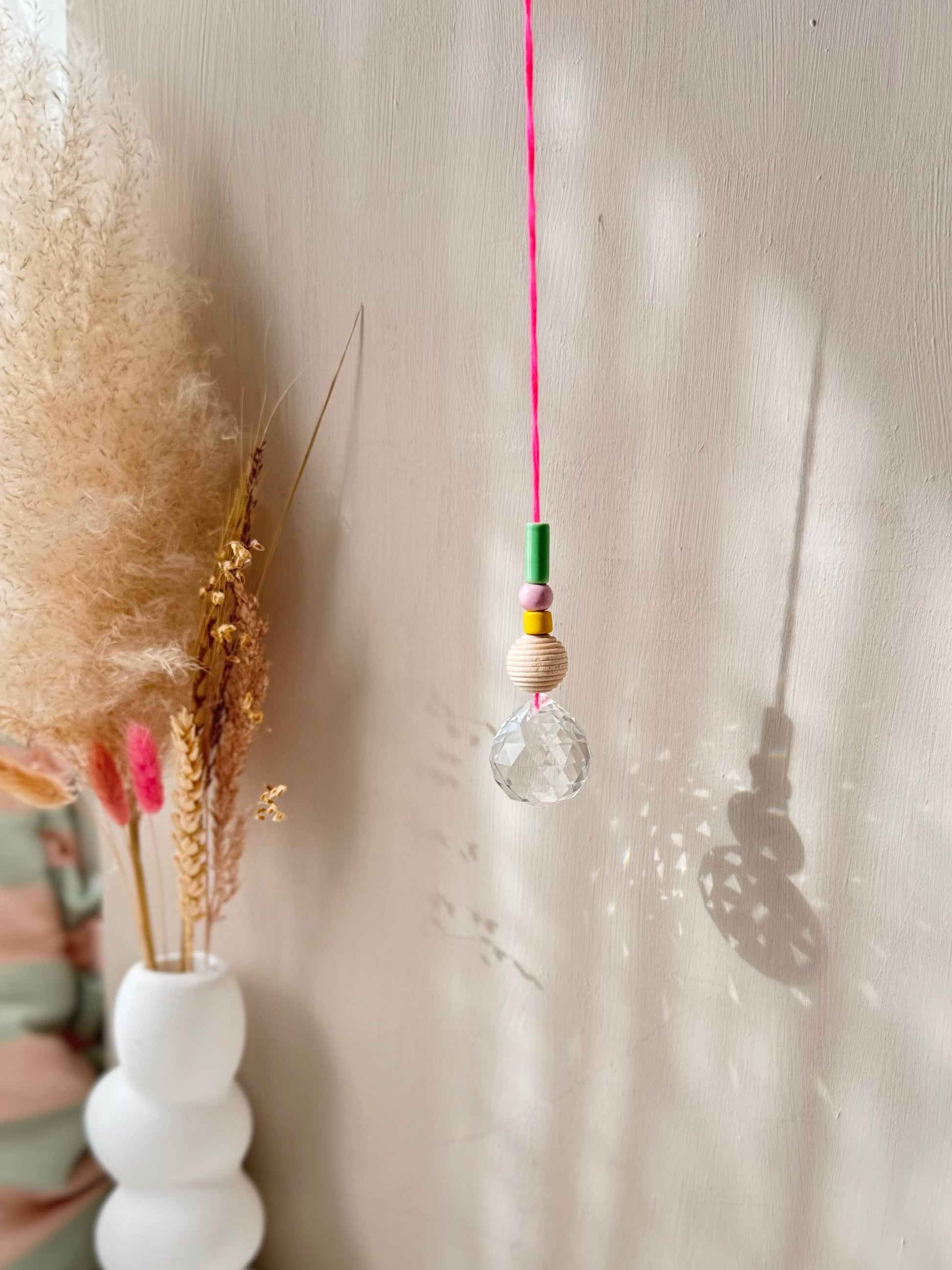 Jeder Sonnenfänger wird mit größter Sorgfalt und Liebe zum Detail handgefertigt. Die Kombination aus echtem Glaskristall, Keramikperlen und natürlichen Holzperlen macht jeden Sonnenfänger zu einem einzigartigen Unikat.