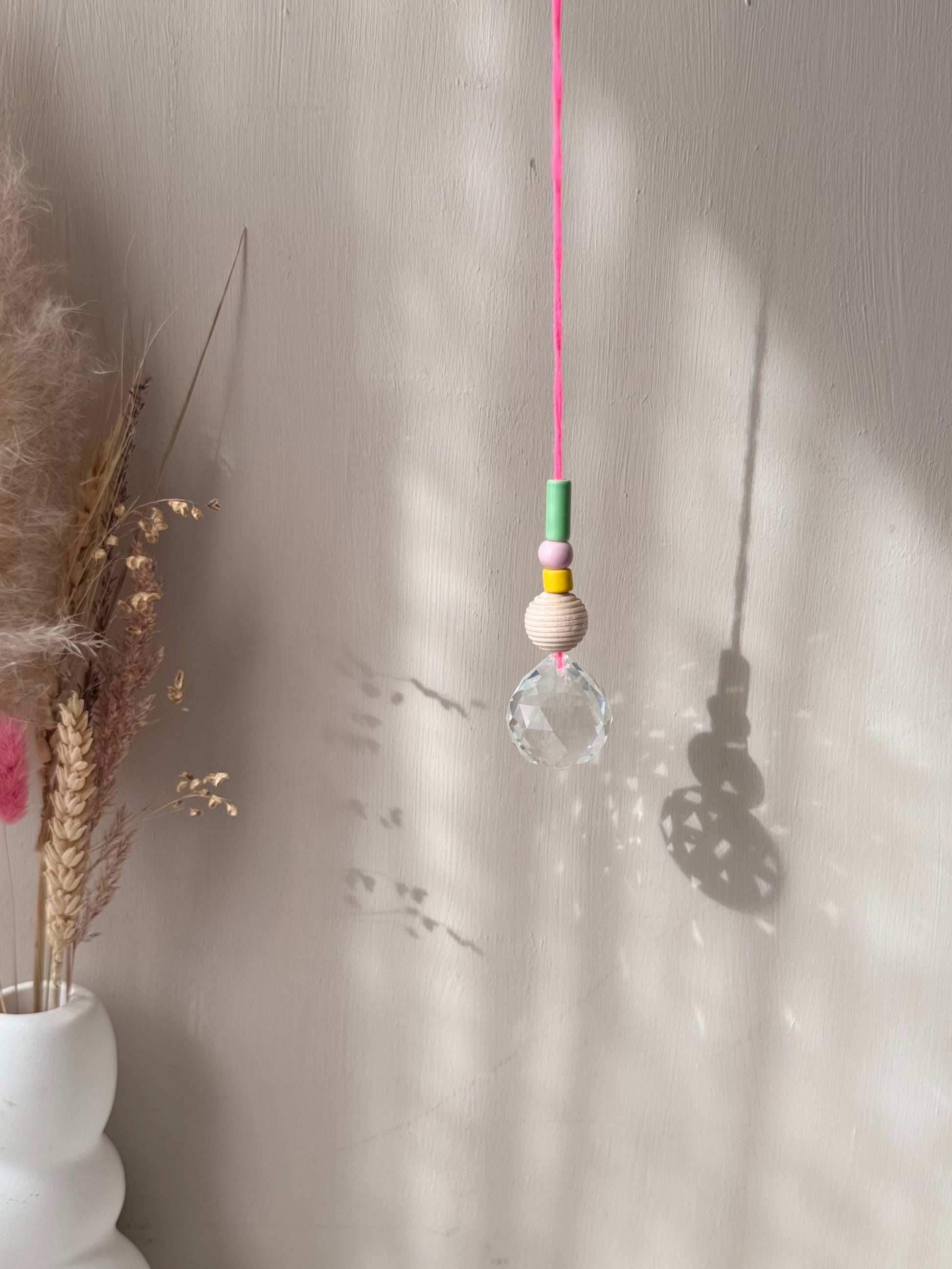Handgefertigter schlichter Sonnenfänger Neon und Pastell - Suncatcher mit Prisma - Regenbogen Fensterdekoration aus Glas
