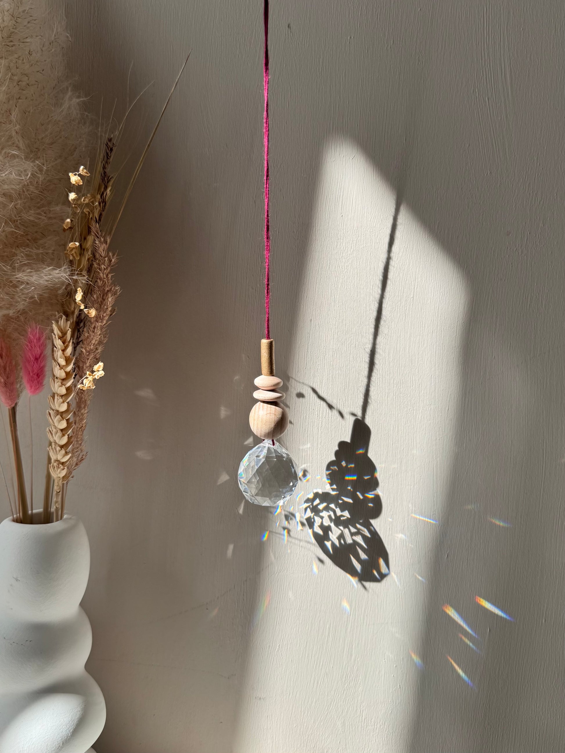 Jeder Sonnenfänger wird mit größter Sorgfalt und Liebe zum Detail handgefertigt. Die Kombination aus echtem Glaskristall, Keramikperlen und natürlichen Holzperlen macht jeden Sonnenfänger zu einem einzigartigen Unikat.