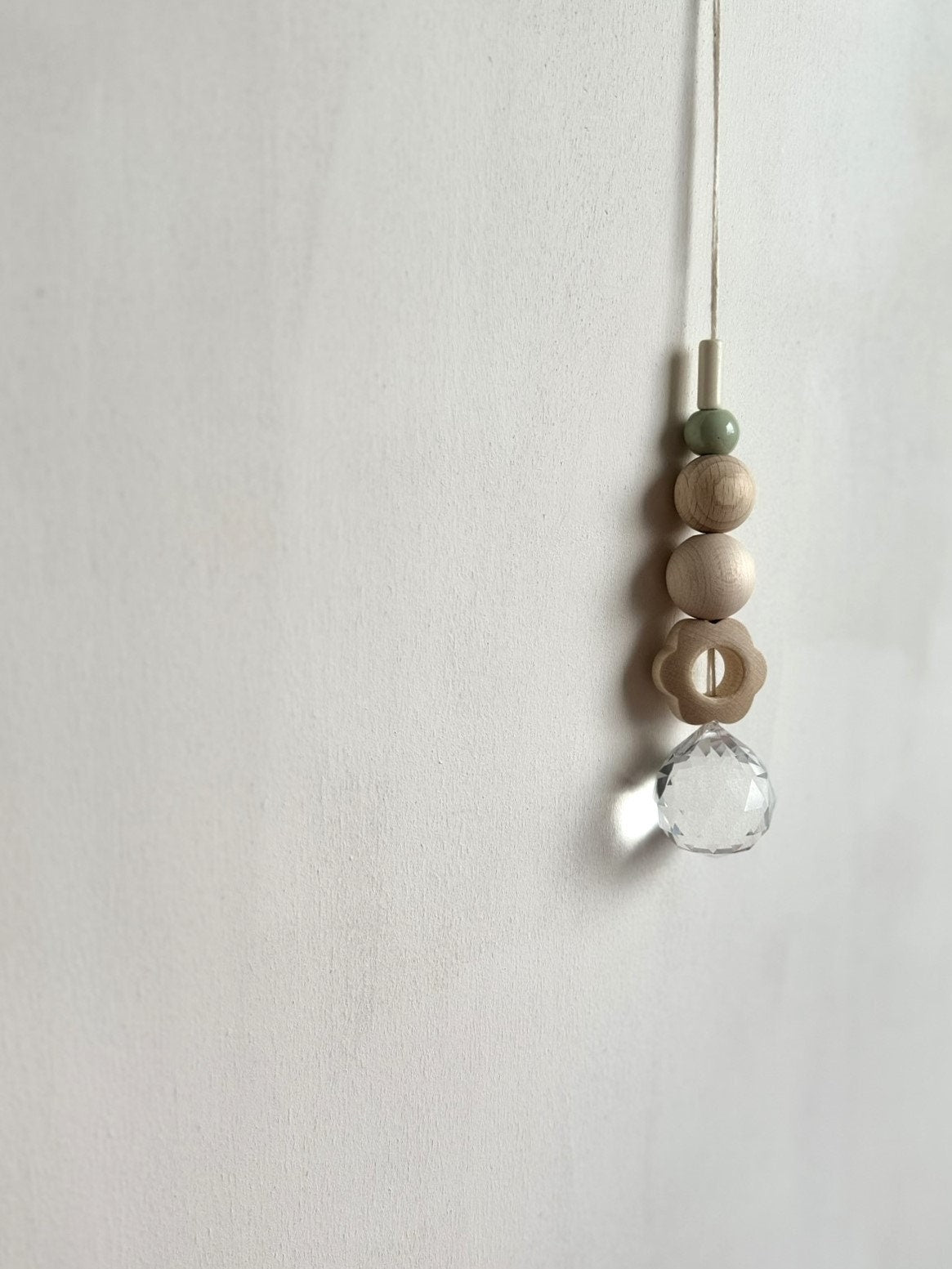 Jeder Sonnenfänger wird mit größter Sorgfalt und Liebe zum Detail handgefertigt. Die Kombination aus echtem Glaskristall, Keramikperlen und natürlichen Holzperlen macht jeden Sonnenfänger zu einem einzigartigen Unikat.