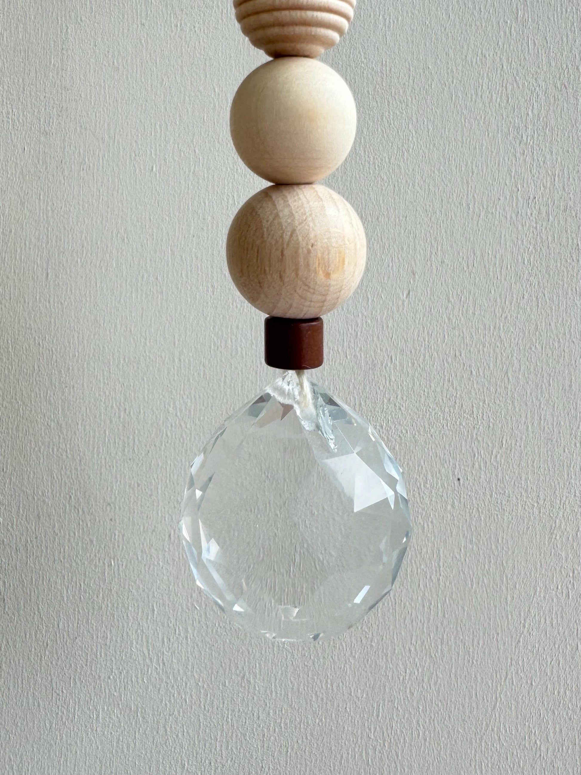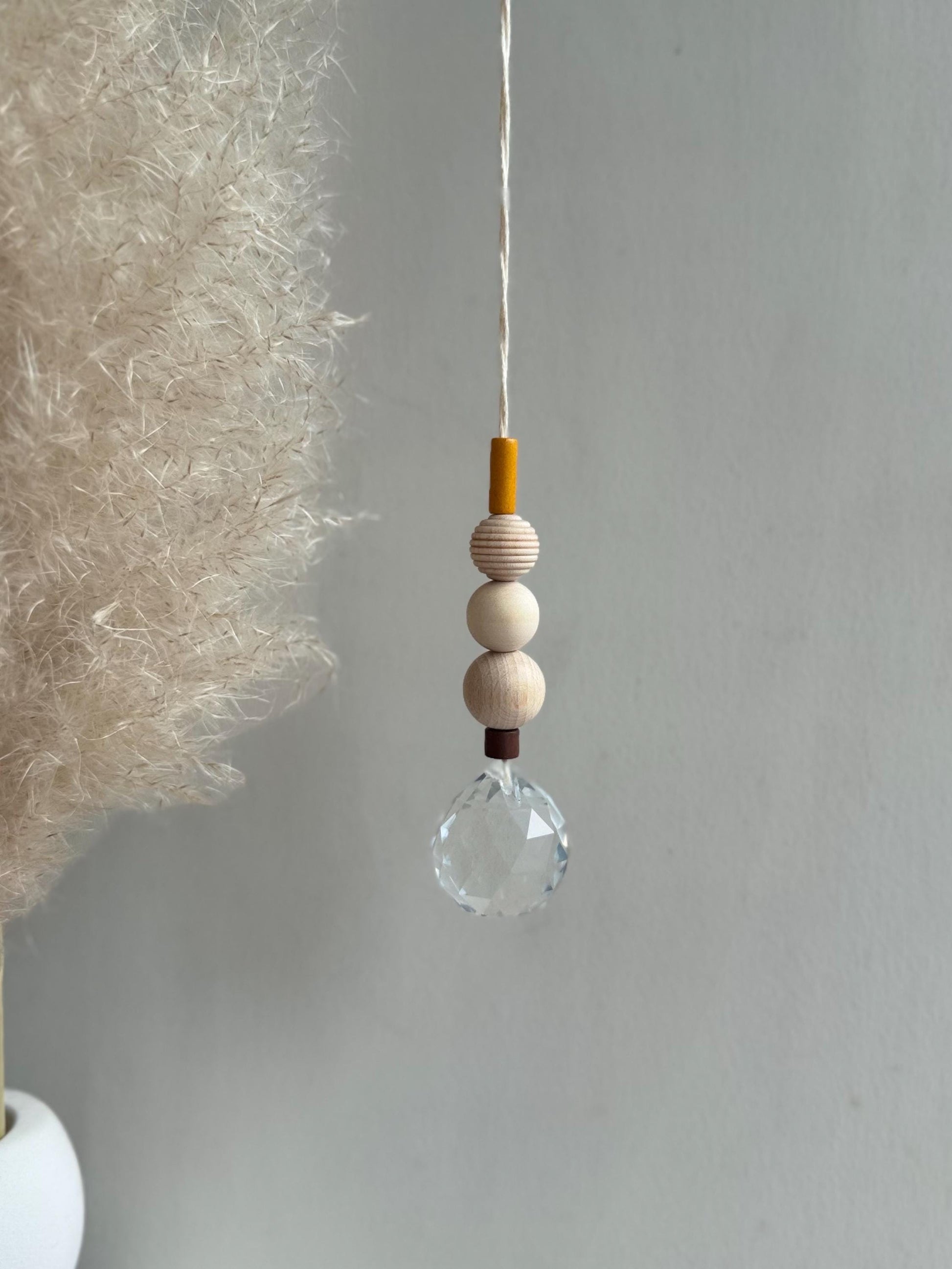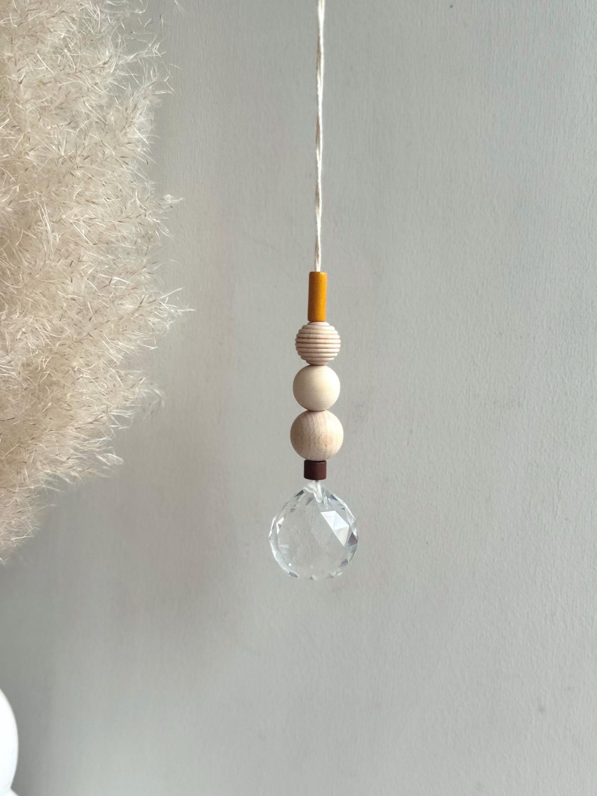Jeder Sonnenfänger wird mit größter Sorgfalt und Liebe zum Detail handgefertigt. Die Kombination aus echtem Glaskristall, Keramikperlen und natürlichen Holzperlen macht jeden Sonnenfänger zu einem einzigartigen Unikat.