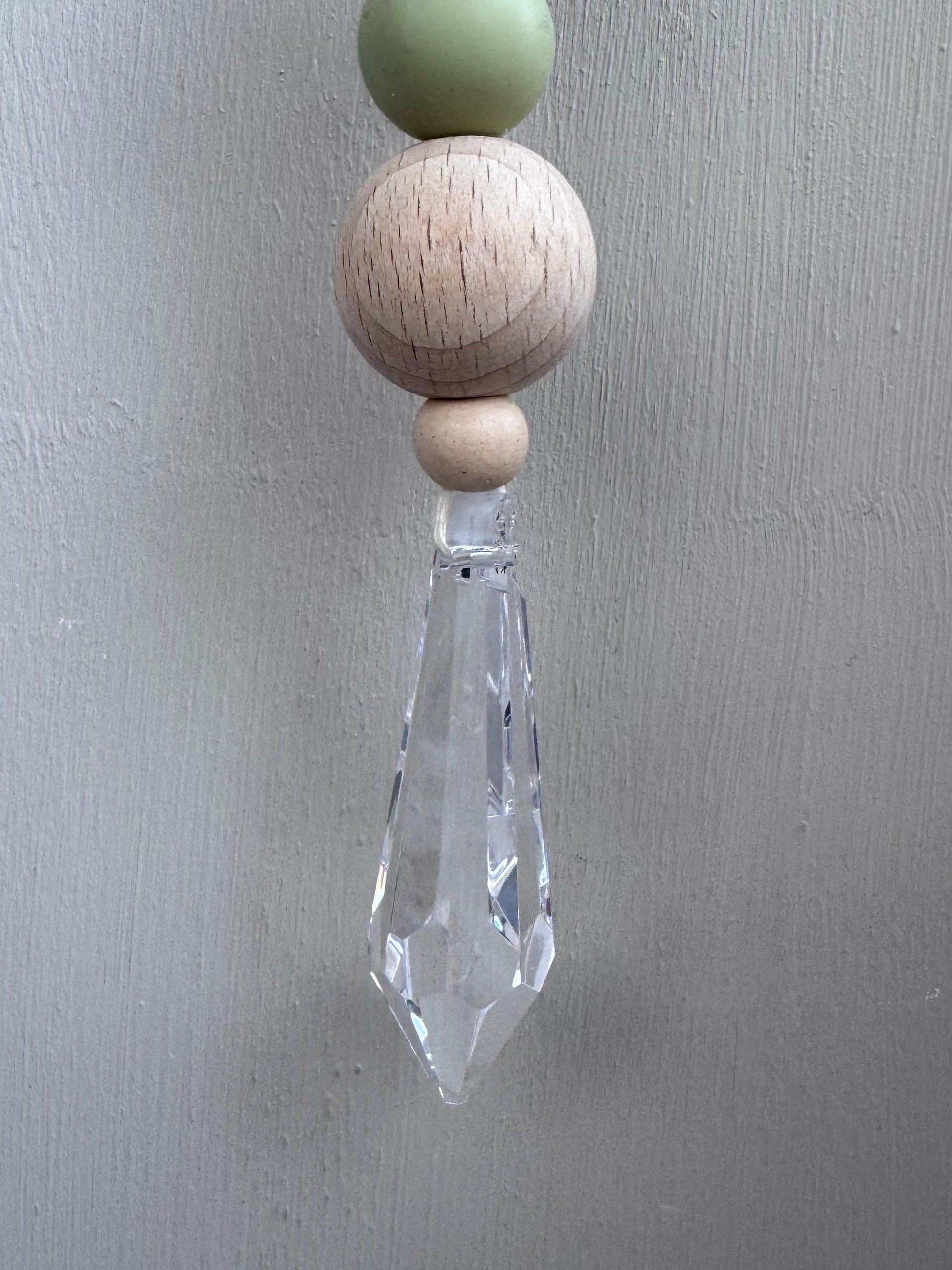 Jeder Sonnenfänger wird mit größter Sorgfalt und Liebe zum Detail handgefertigt. Die Kombination aus echtem Glaskristall, Keramikperlen und natürlichen Holzperlen macht jeden Sonnenfänger zu einem einzigartigen Unikat.