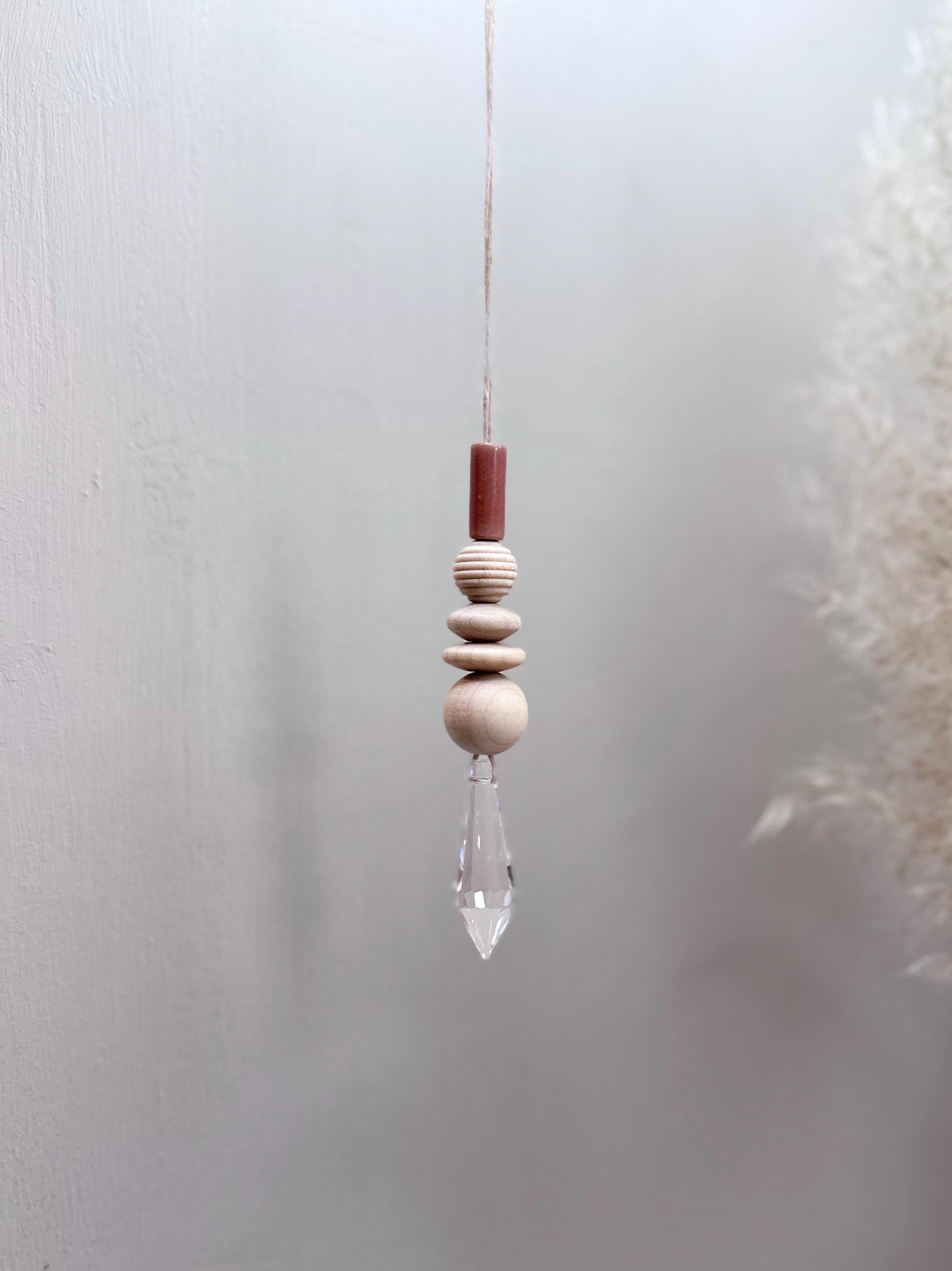 Jeder Sonnenfänger wird mit größter Sorgfalt und Liebe zum Detail handgefertigt. Die Kombination aus echtem Glaskristall, Keramikperlen und natürlichen Holzperlen macht jeden Sonnenfänger zu einem einzigartigen Unikat.