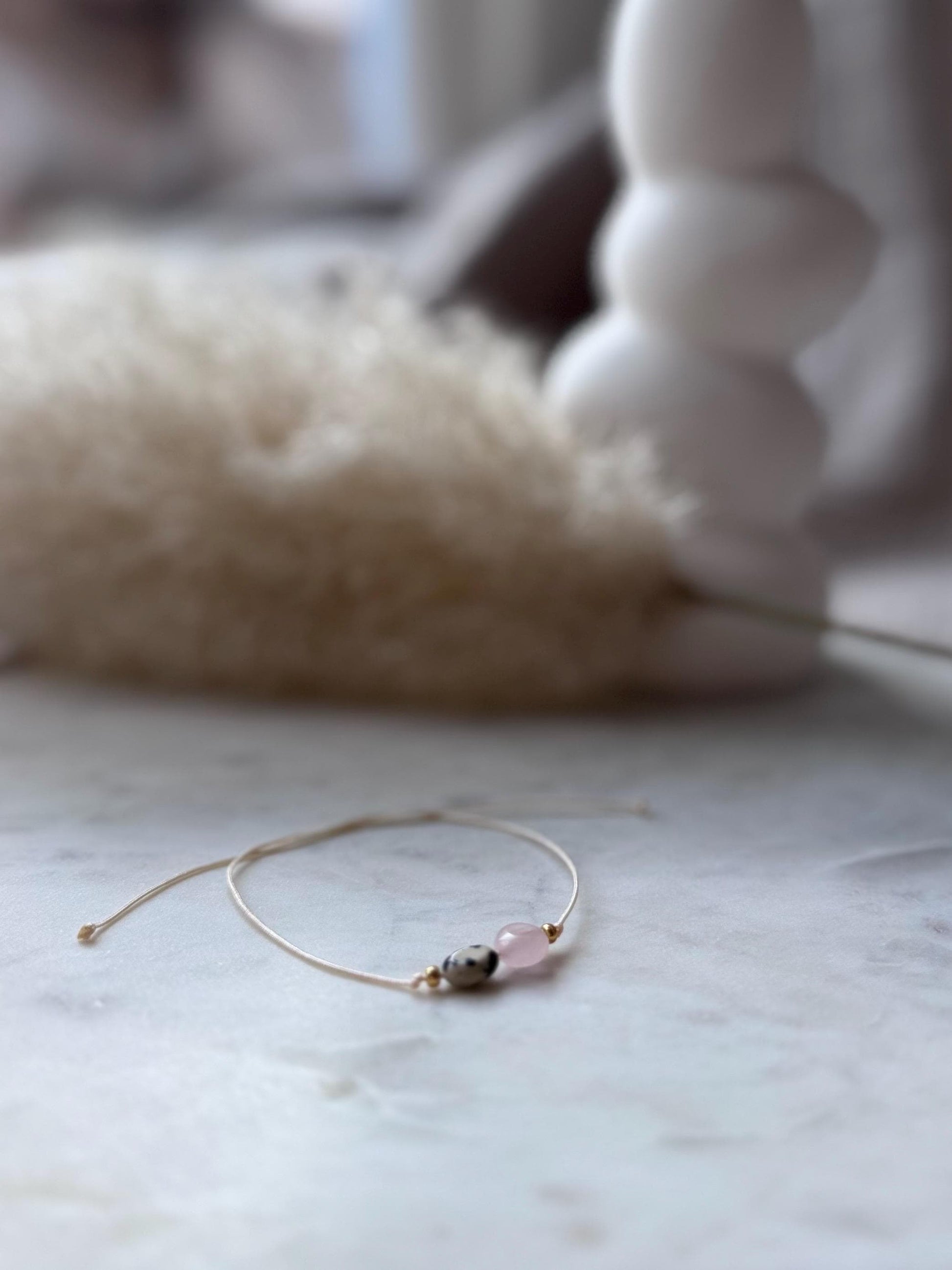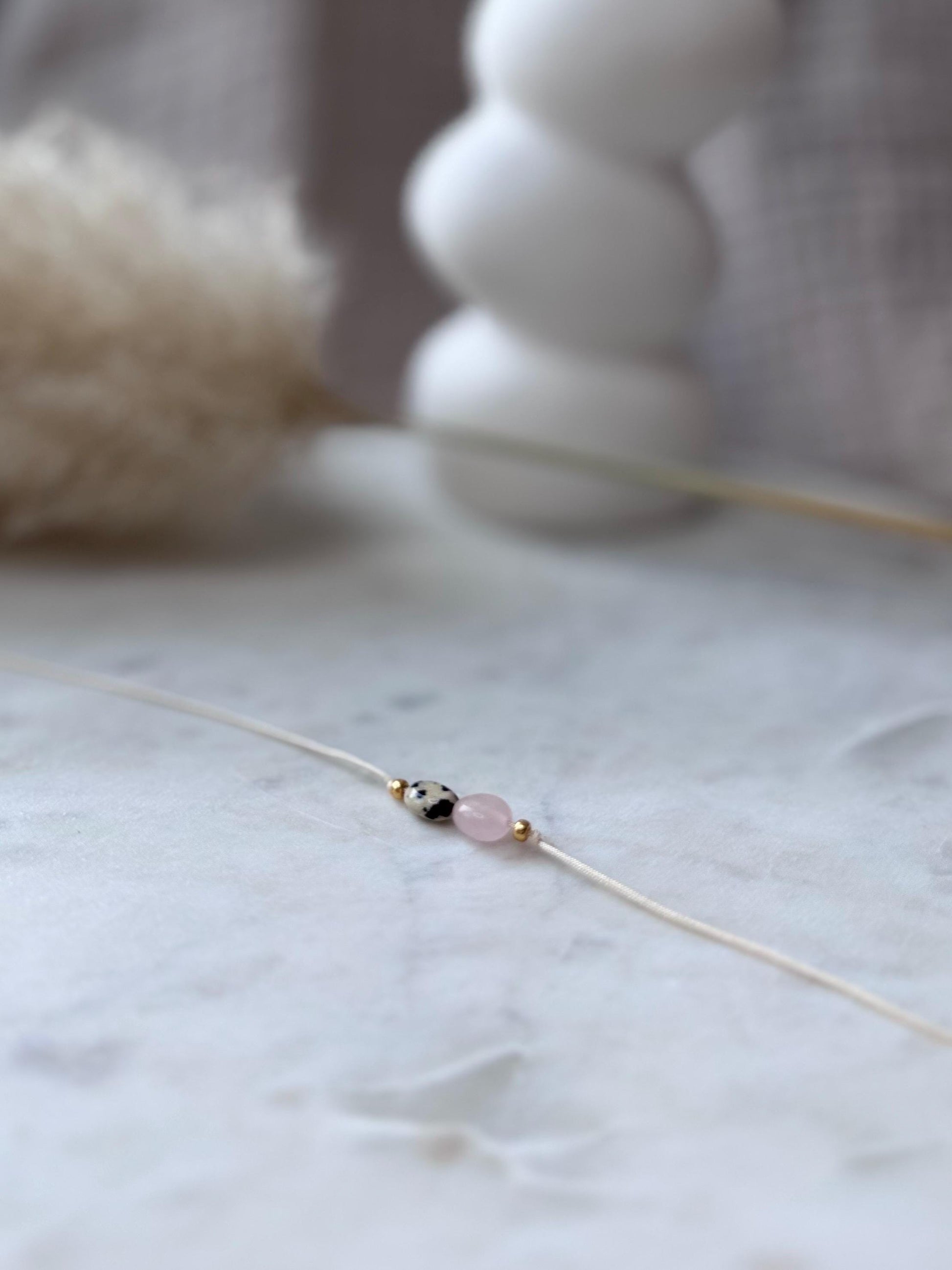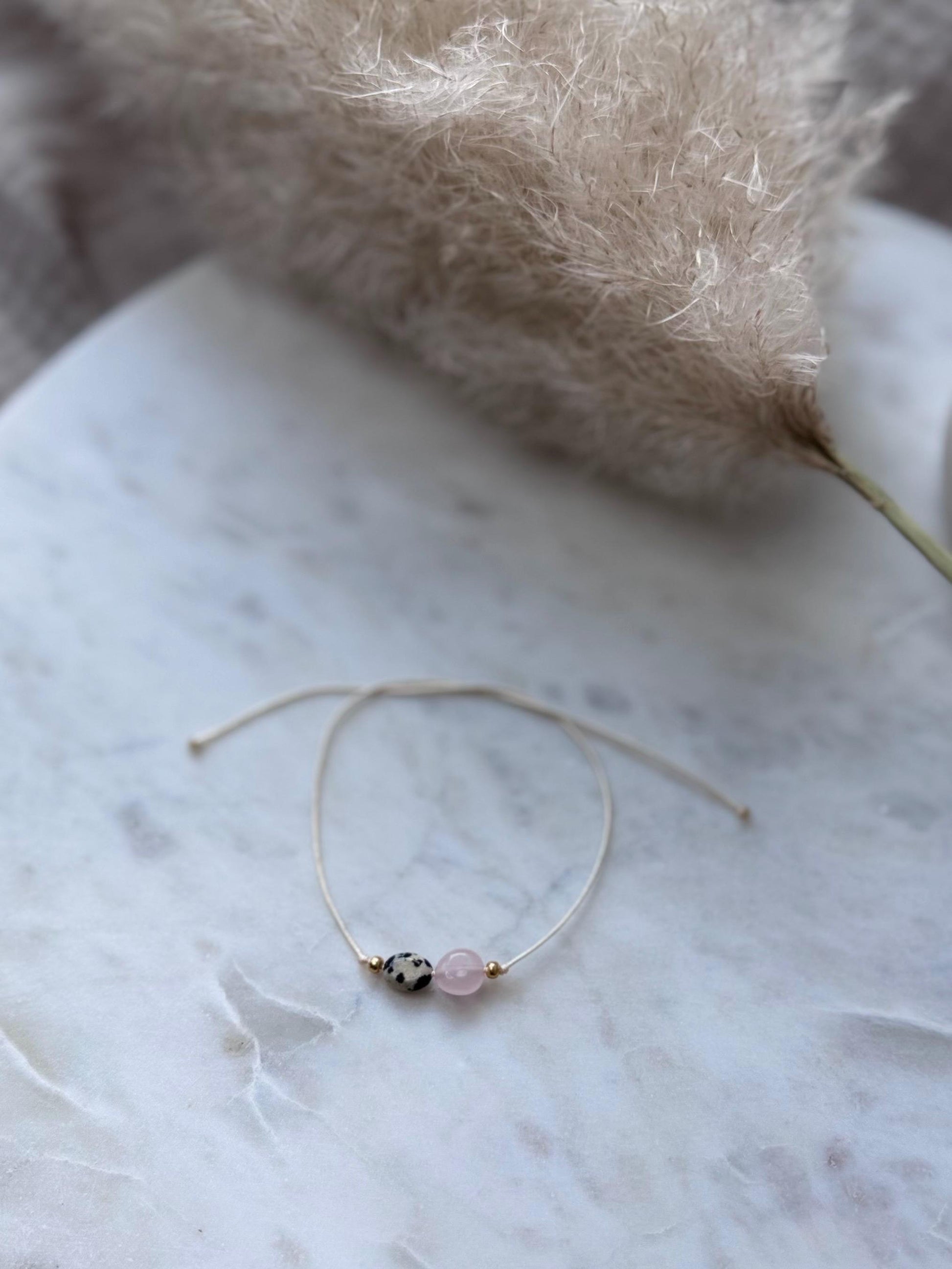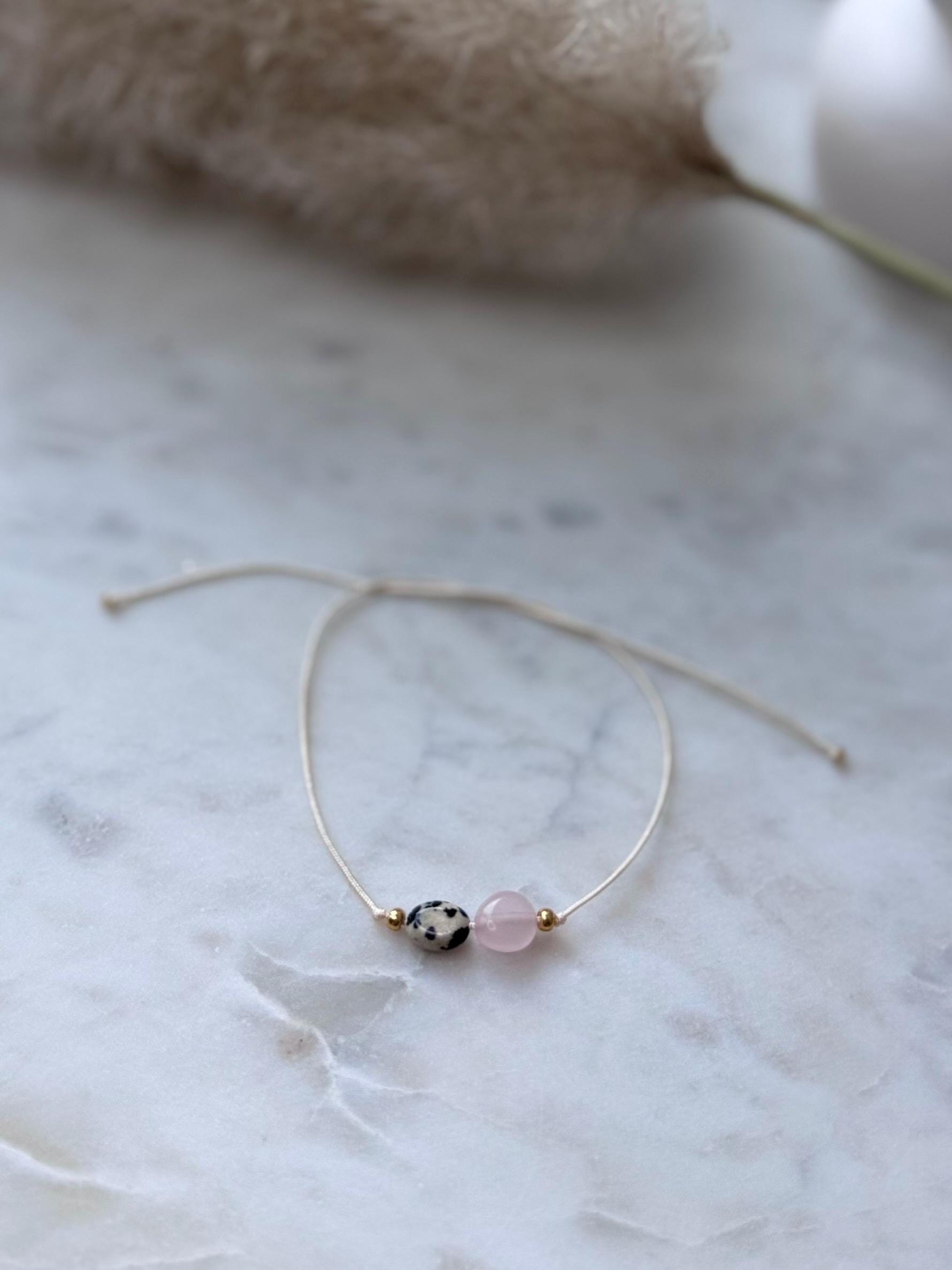 Wunscharmband mit Rosenquarz und Dalmatiner Jaspis