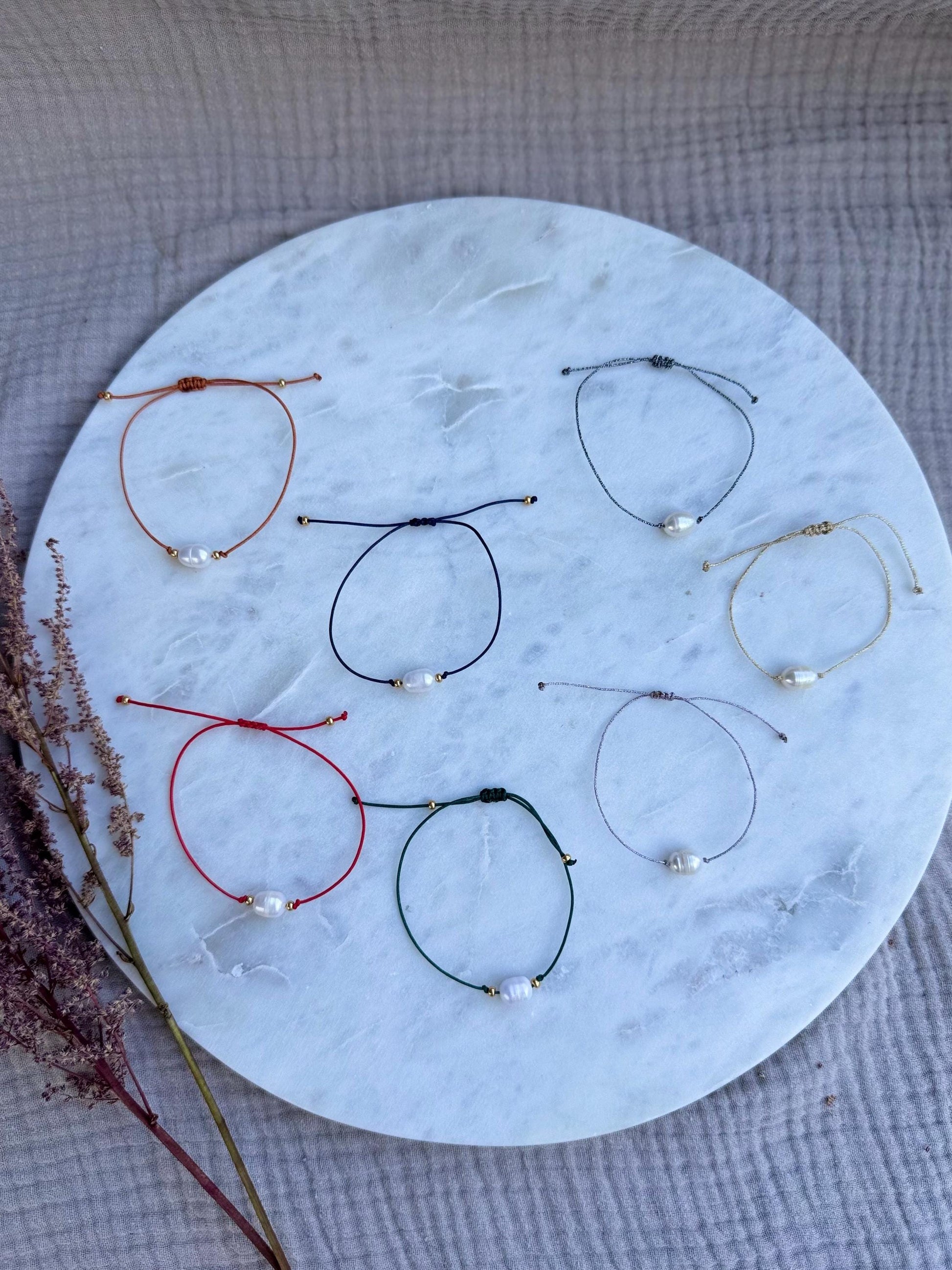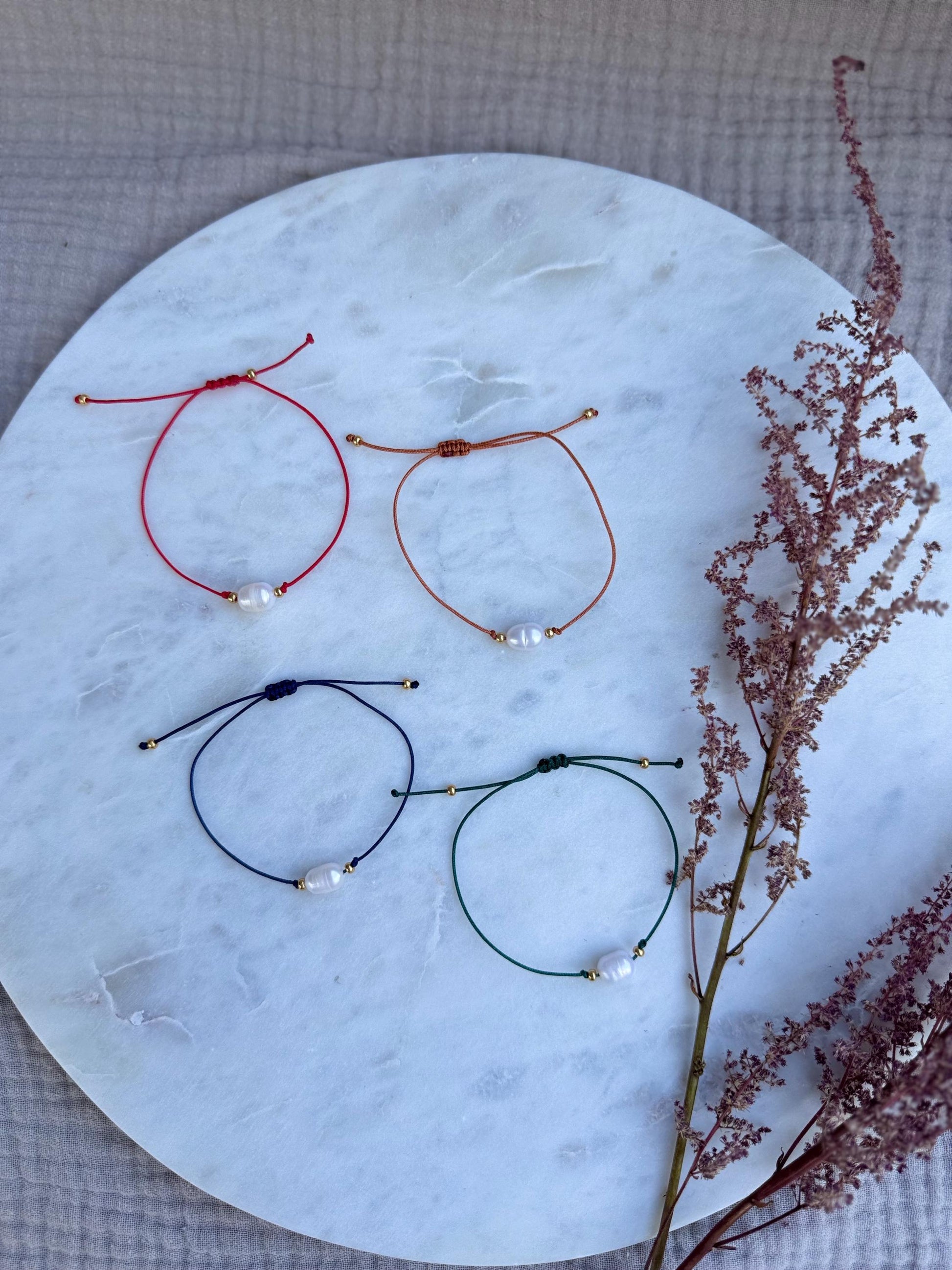 Dein perfektes Accessoire für jede Jahreszeit! Dieses wunderschöne handgefertigte Süßwasserperlen Armband aus hochwertigem, filigranem Polyesterband mit echter Süßwasserperle ist das perfekte Accessoire für jeden Anlass. Das größenverstellbare Armband passt sowohl Kindern als auch Erwachsenen.